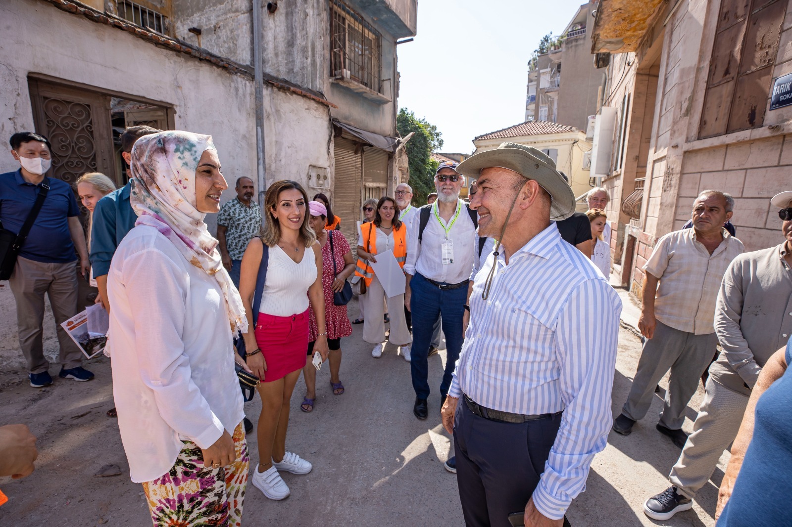 İzmir Büyükşehir Belediye Başkanı Tunç Soyer, Uluslararası Cittaslow Birliği heyetine Konak Pazaryeri Mahallesi'nde yürüttükleri “Sakin Mahalle” çalışmalarını yerinde anlattı. İzmir'in Cittaslow Metropol olmak isteyen kentlere önderlik edecek olmasının çok heyecan verici olduğunu söyleyen Başkan Soyer, “İzmir bu büyük projenin önümüzdeki yıllarda çok faydasını görecek. Kentin ticaret, kültür, sanat ve pek çok alanda uluslararası bilinirliği artacak” dedi.
