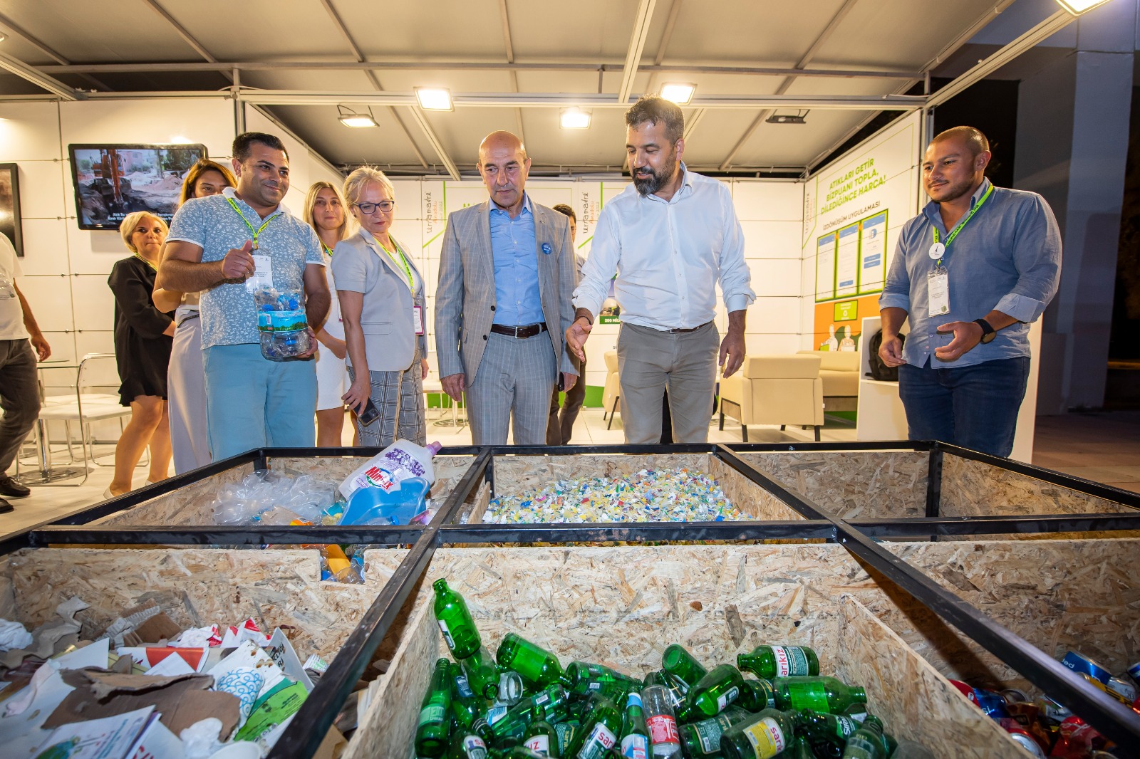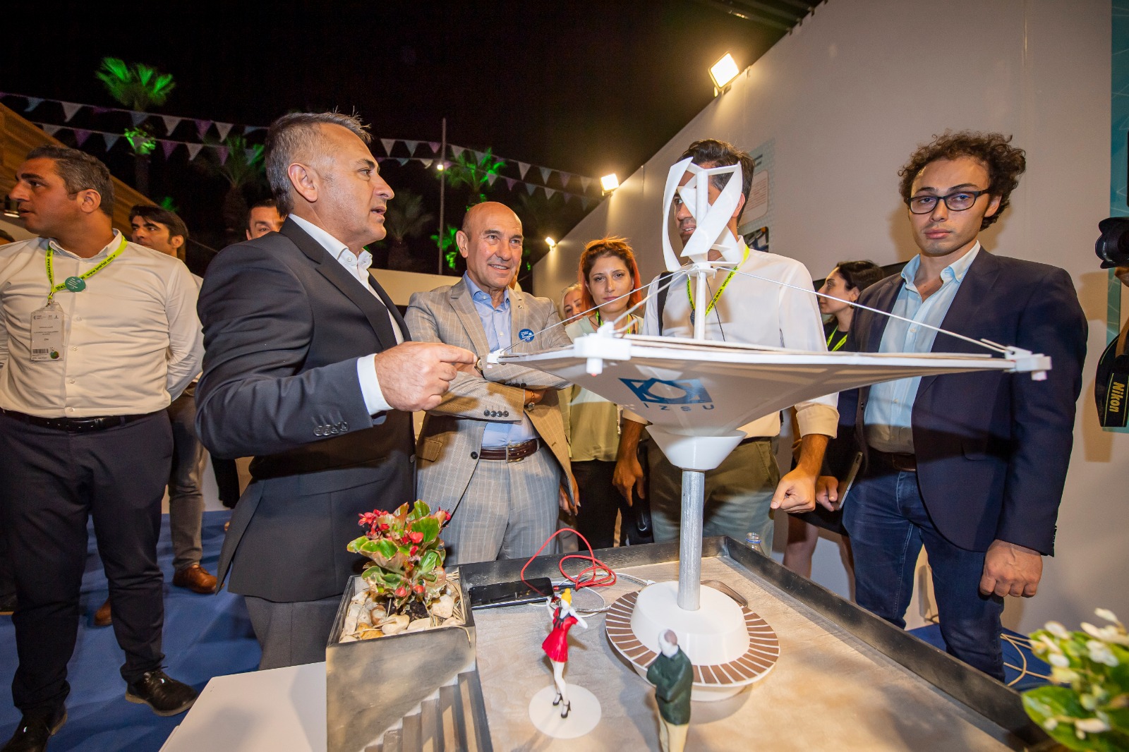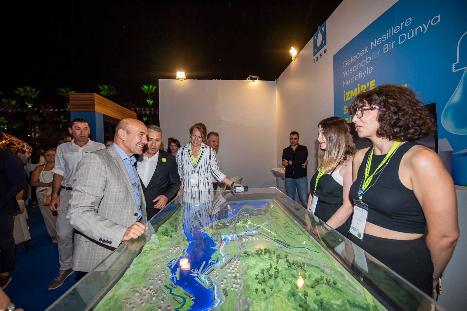 İZSU Genel Müdürlüğü standının çocuklar için ayrılan bölümünü ziyaret eden Başkan Tunç Soyer, çocuklara suyun önemini anlatmak amacıyla yapılan eğitici etkinliklere eşlik etti. Başkan Soyer, İZSU’nun atık su arıtma ve atık suyun geri kazanımına yönelik yeni teknolojilerle ilgili çalışmaları, tasarrufa teşvik eden sulama yöntemleri, yenilenebilir enerji projeleri, musluktan akan şebeke suyunun tadımı ve şebeke suyunun analiz sonuçlarının paylaşıldığı bölümlerde Genel Müdür Ali Hıdır Köseoğlu’ndan bilgi aldı. Türkiye’nin en büyük ileri biyolojik atık su arıtma tesislerinden Çiğli İleri Biyolojik Atık Su Arıtma Tesisi için projelendirilen geri kazanım ünitesinin maket tasarımını inceledi. Ters Şemsiye Yağmursuyu ve Enerji Hasadı Ar-Ge Projesi’ni maket üzerinde inceleyerek, projenin detaylarını dinledi.