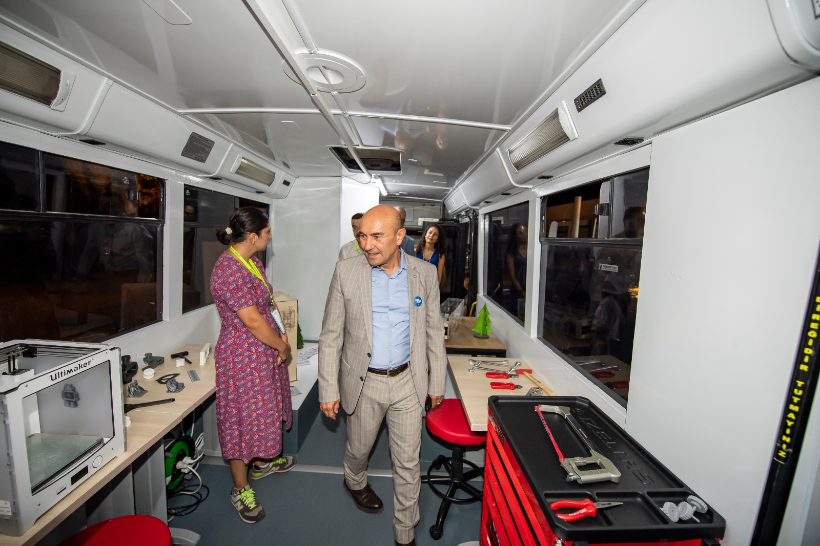 Başkan Soyer, fuar gezisinde ESHOT Genel Müdürlüğü için ayrılan alana da uğradı. ESHOT atölyelerinde hazırlanan Gezici Kütüphane, Mobil Mutfak, Gezici Kreş ve Çocuk Oyun Aracı ile Taziye Otobüsü’nü inceleyen Soyer, Hatıra Panosu’nda fotoğraf çektirdi.