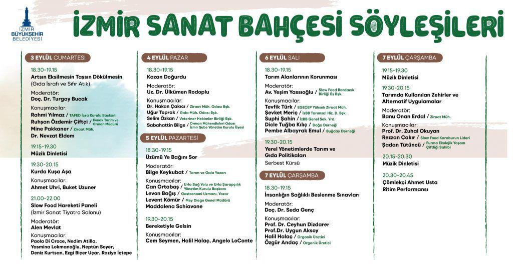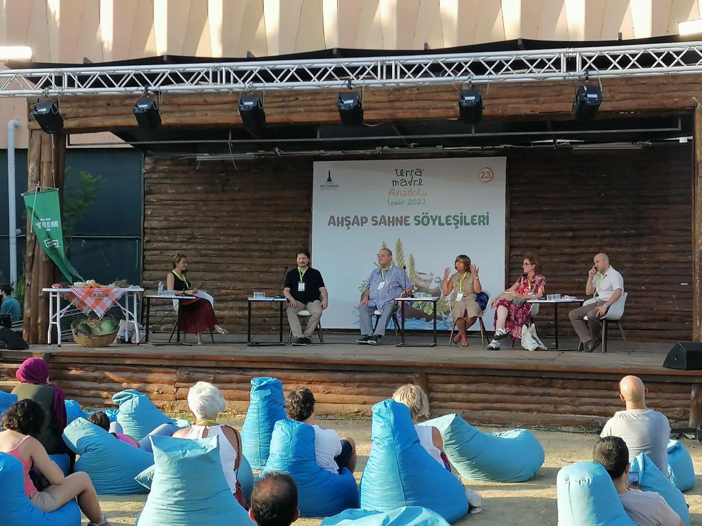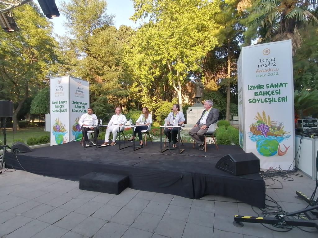 Terra Madre Anadolu kapsamında düzenlenen “İzmir Sanat Bahçesi’ söyleşileri de ilgi topluyor. Moderatörlüğünü Slow Food Bardacık Eş Başkanı Yeşim Yassıoğlu’nun üstlendiği “Tarım Alanlarının Korunması” başlıklı söyleşide doğa, tarım, biyoçeşitlilik, iklim değişikliği, gıda ve su güvenliği gibi birçok hayati konu konuşuldu.