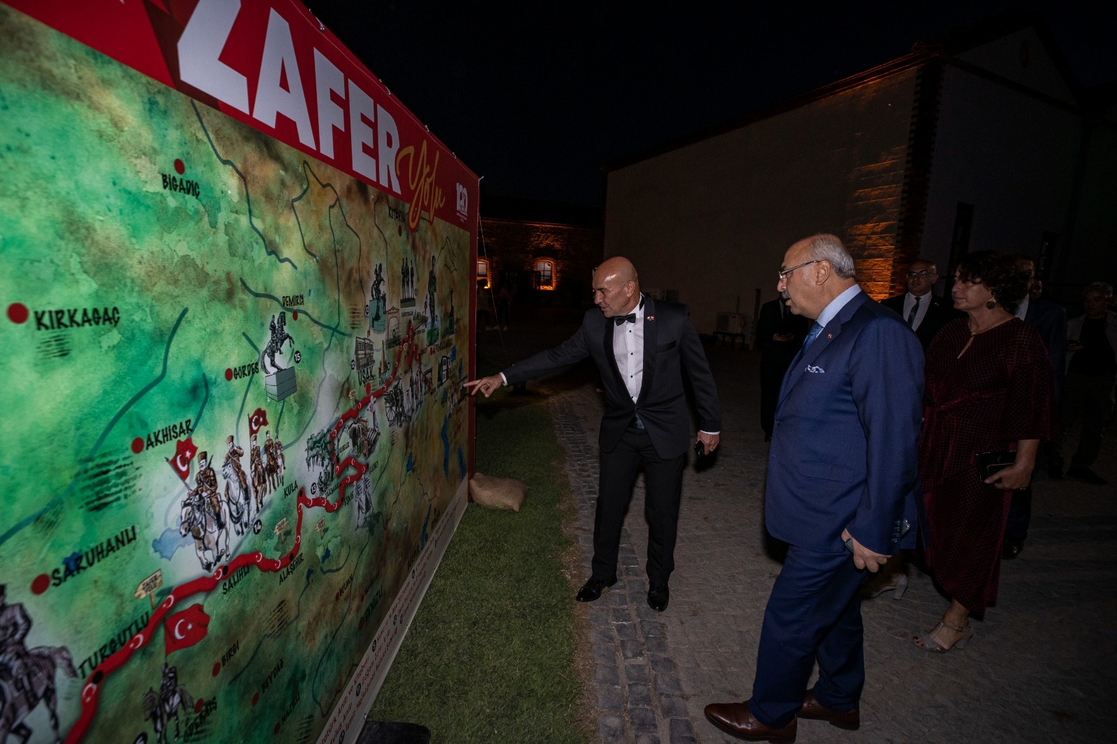 Başkan Soyer “Bu yol bizim yolumuzdur. Mustafa Kemal’in askerlerinin yoludur” ifadelerini kullanarak şunları söyledi: “Biz bu yolculuğu yüz yıldır yüreğimizde taşıdık. İki hafta önce Afyon’da, bu yüz yıllık yürüyüşümüzü ete kemiğe büründürdük. Yalın ayak ölüme koşan, canını bu vatan için feda eden kahramanlarımızın anısını yaşatmak için dört yüz kilometrelik Zafer ve Anma yürüyüşümüzü 24 Ağustos akşamı, Büyük Taarruz öncesi Türk ordusuna kucak açan Dereçine’de başlattık.”