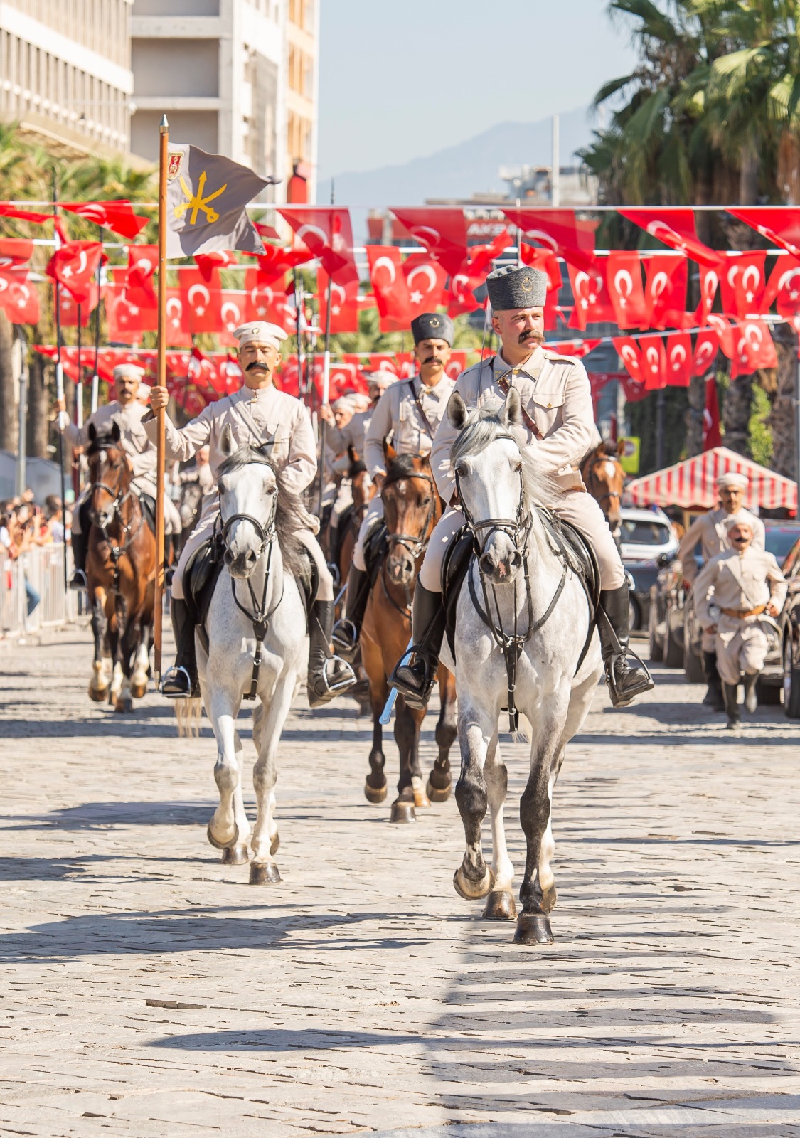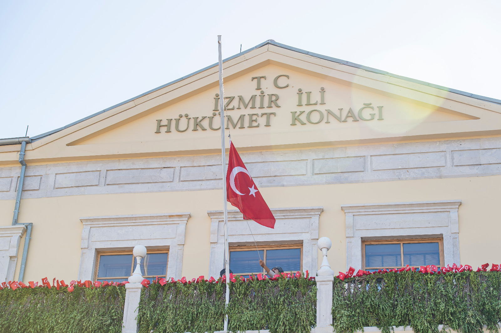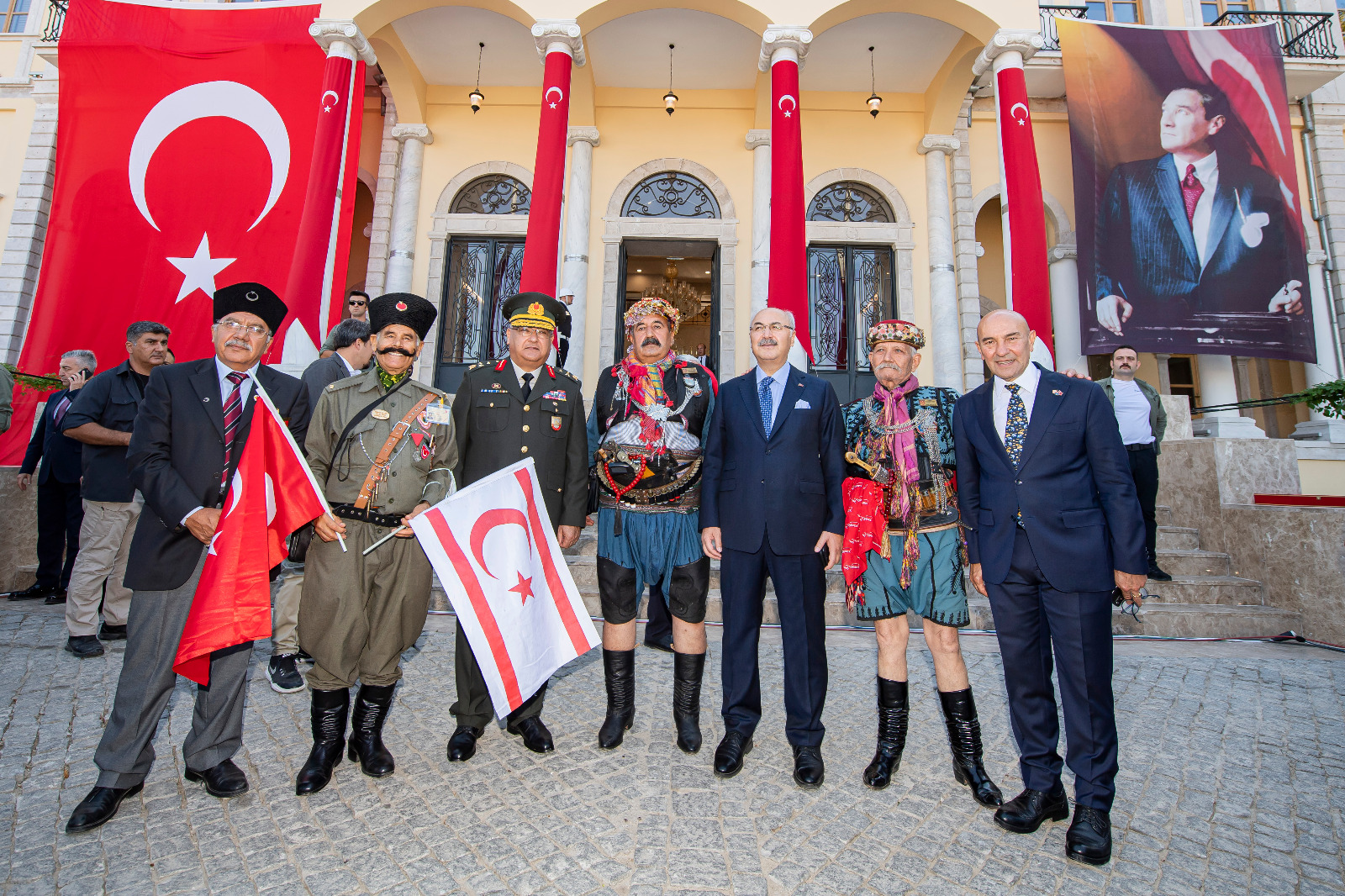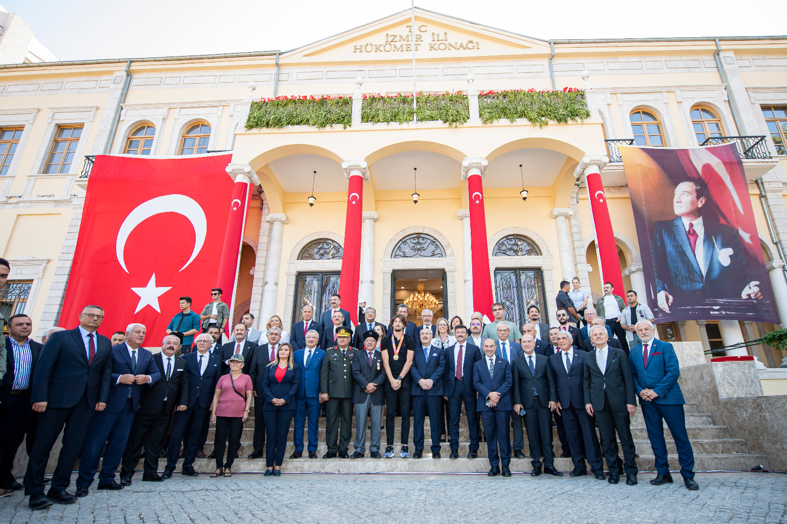 İzmir’in işgalden kurtuluşunun 100. yıldönümü kutlamaları kapsamında Konak Meydanı’nda temsili bayrak töreni yapıldı. Törende İzmir’in kurtuluşunu canlandıran süvari birlikleri İzmir Hükümet Konağı’nın önüne geldi ve Yüzbaşı Şerafettin’i temsil eden bir asker Hükümet Konağı’na Türk bayrağını çekti.