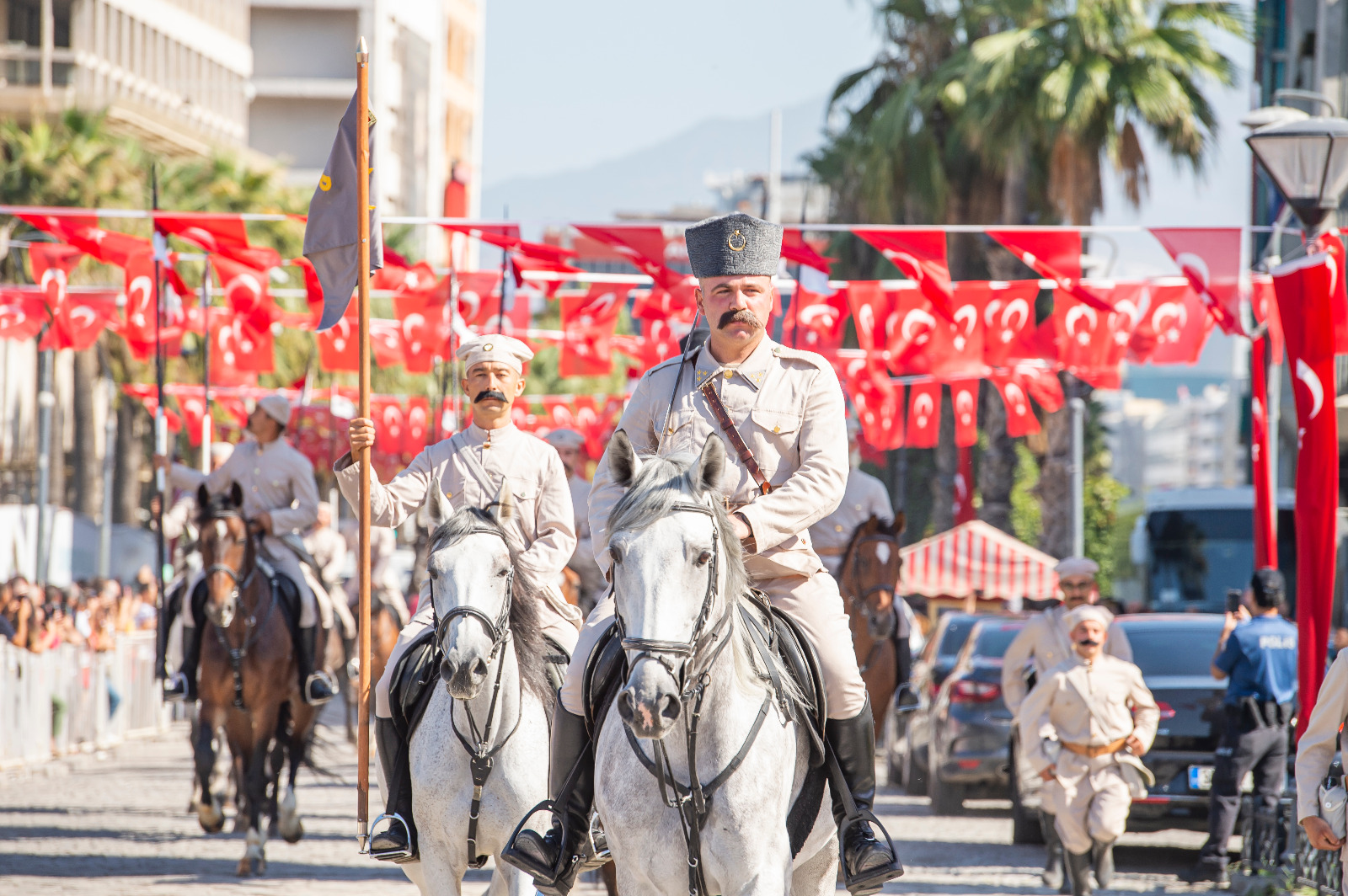 9 Eylül törenleri kapsamında Konak Meydanı'nda düzenlenen bayrak törenine Vali Yavuz Selim Köşger, Ege Ordusu ve Garnizon Komutanı Korgeneral Kemal Yeni, İzmir Büyükşehir Belediye Başkanı Tunç Soyer, AK Parti Genel Başkan Vekili Binali Yıldırım, CHP İzmir Milletvekilleri Kani Beko, Mahir Polat, Kamil Okyay Sındır, Sevda Erdan Kılıç, İYİ Parti İzmir Milletvekilleri Aytun Çıray, Musavat Dervişoğlu, AKP İzmir Milletvekilleri Atilla Kaya, Hamza Dağ, MHP İl Başkanı Veysel Şahin, muhtarlar, siyasi partilerin, kamu kuruluşları, üniversiteler ve sivil toplum örgütlerinin temsilcileri katıldı. Konak Meydanı’na gelen süvari birlikleri, kentin kurtuluşunu simgeleyen tarihi sahneyi bir kez daha canlandırarak, İzmirlilerin alkışları arasında Türk Bayrağı’nı Hükümet Konağı’nın gönderine çekti. İzmir Büyükşehir Belediye Başkanı Tunç Soyer ise törenin ardından Yüzbaşı Şerafettin’i temsil eden Süvari Birlikleri Komutanı’na teşekkür plaketi sundu.