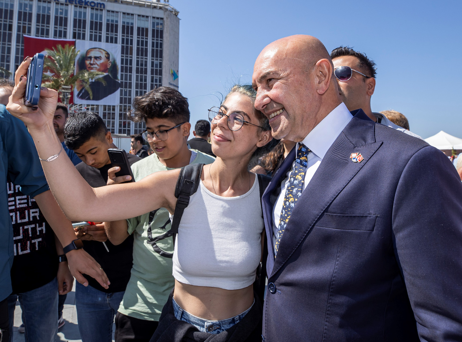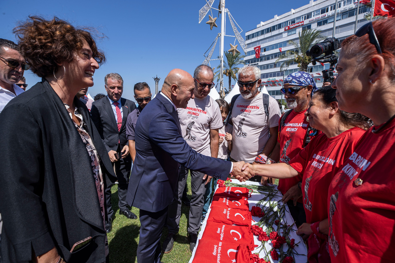 Başkan Tunç Soyer, “Bizlere bağımsızlığı, özgür ve onurlu bir yaşamı miras bırakan başta büyük önderimiz Atatürk ve tüm kahramanlarımızın yolunda yürümek, en önemli vazifemiz. Onların bıraktığı miras, bizim en büyük hazinemiz. Bu mirasa sahip çıkmak ve bizden sonraki kuşaklara emanet etmek, boynumuzun borcu. Tam da bu süreçte 100 yıl önce atalarımızın canıyla, kanıyla ödediği bedelleri; kadını, genci, yaşlısı demeden topyekûn yapılan mücadeleyi yeniden hatırlamamız gerekiyor. Bu meydandaki buluşmamız, bu müthiş coşku, işte bunun kanıtı. İkinci yüzyılın umudunu büyüten de sizlersiniz. Cumhuriyetimizin ikinci yüzyılında hep beraber çok daha güzel bir memleketi el ele, kol kola, güle oynaya inşa edeceğimize tüm kalbimle inanıyorum” dedi.