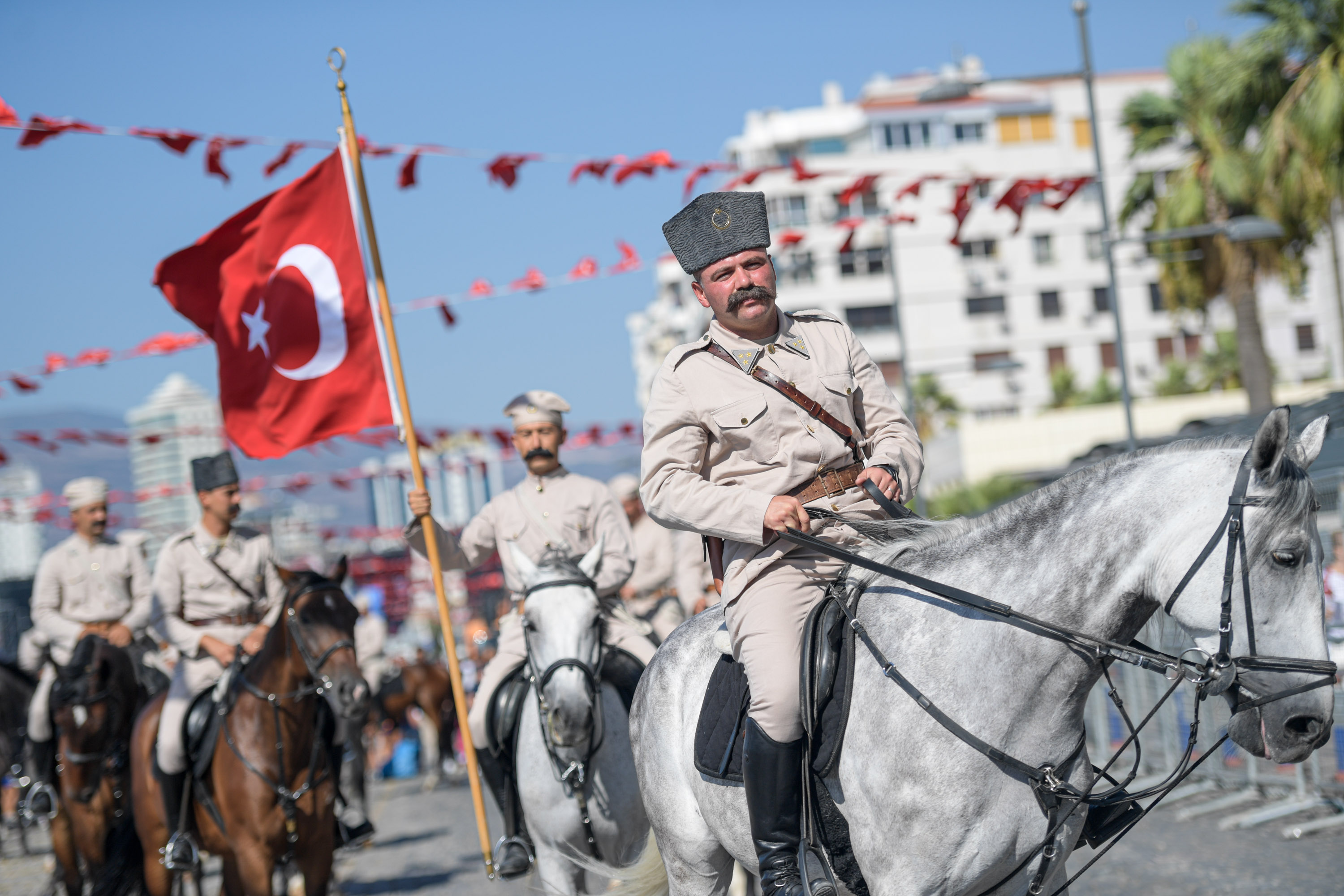 100 yıl önceki gibi süvari birlikleri İzmir sokaklarında