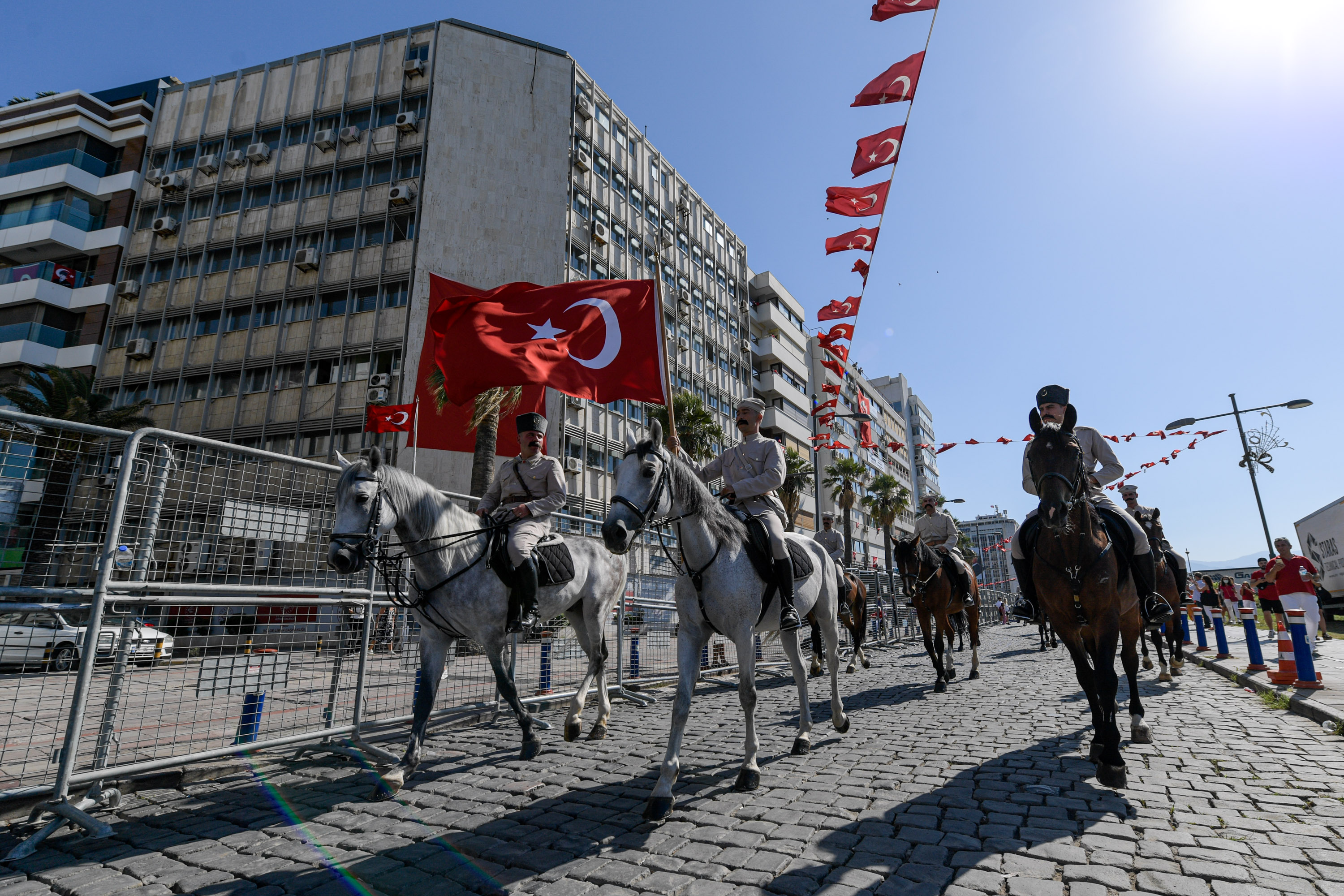 Gösteriler karada da sürdü. Süvari birlikleri 9 Eylül 1922’de olduğu gibi heybetli atlarıyla İzmir sokaklarındaydı. Cumhuriyet Meydanı ile Gündoğdu Meydanı arasında geçit yapan süvarilere İzmirliler büyük ilgi gösterdi.