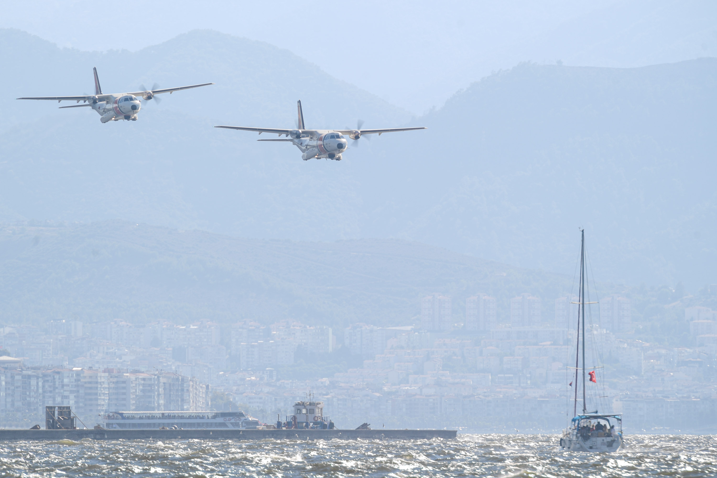 İzmir’in kurtuluşunun 100. yıl dönümü etkinlikleri havada ve karada tüm coşkusuyla sürüyor. Binlerce İzmirli, Türk Yıldızları ve Solo Türk’ün yaklaşık bir saatlik hava gösterisini hayranlıkla seyretti. İzmir semaları aynı zamanda Genel Havacılık Uçakları ve İzmir Kulüpleri’nin selamlama uçuşu, Hürkuş Gösteri Uçuşu, Jandarma Çelik Kanatlar gösterisi, Polis Havacılık Üzüm Salkımı, Sahil Güvenlik Arama Kurtarma ve Flyboard gösterisi ile de şenlendi.