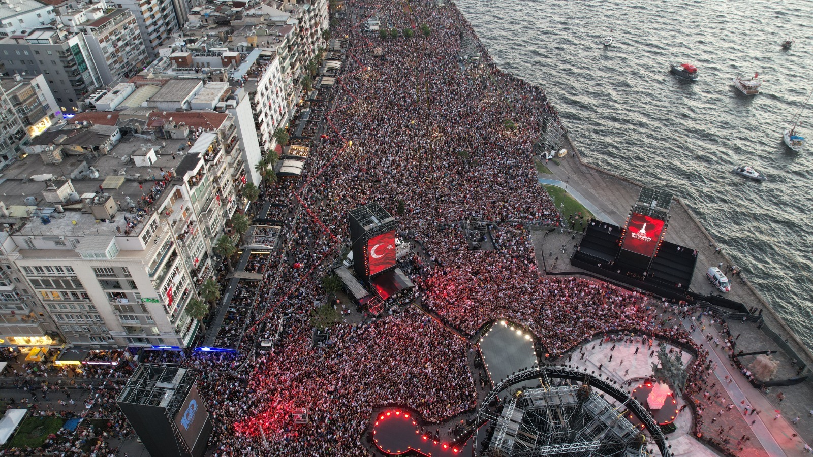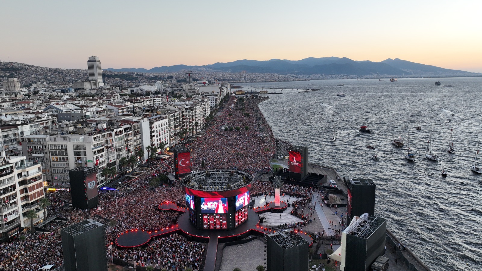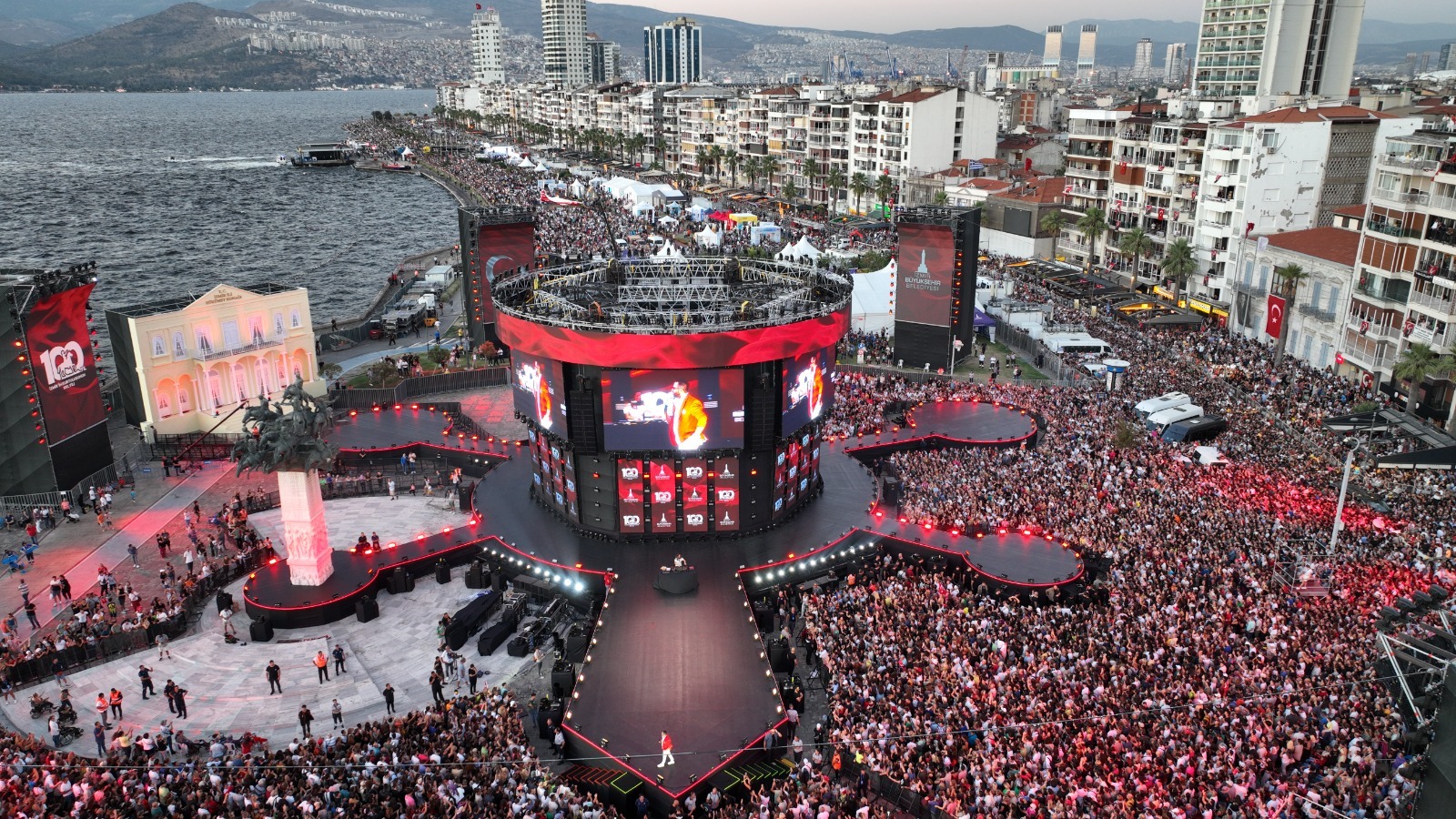 İzmirliler tarihi 100. yıl kutlamaları için Gündoğdu Meydanı’na akın etti.