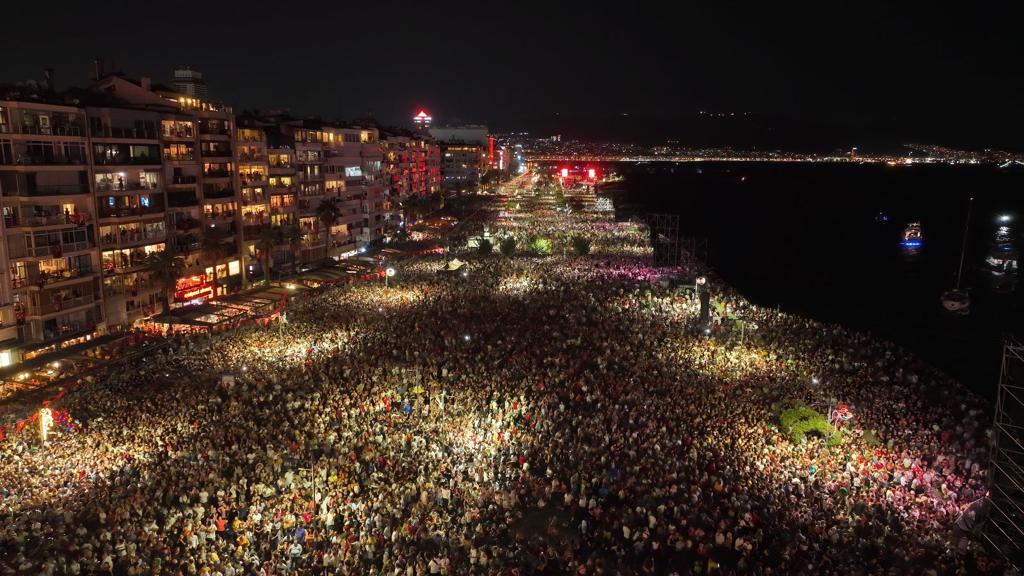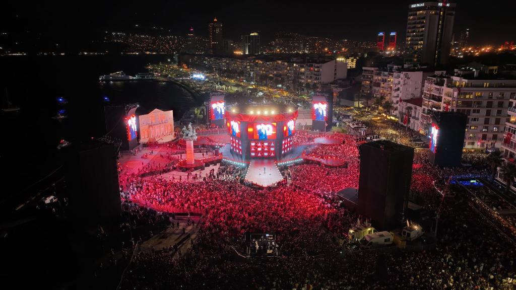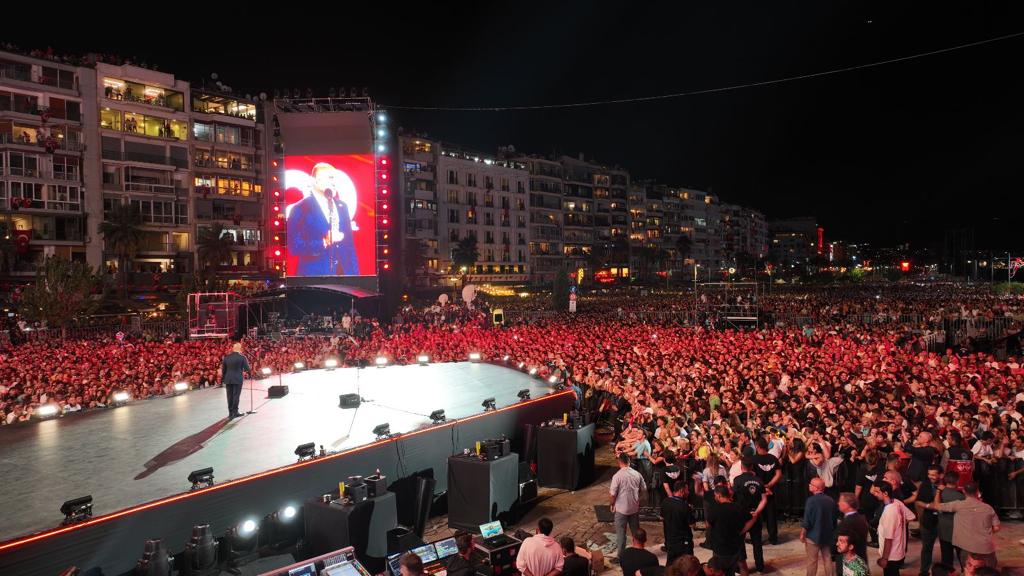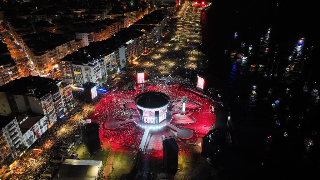 Görsel şov alanda bulunan yüzbinlerce kişi tarafından alkışlarla izlendi. CHP Genel Başkanı Kemal Kılıçdaroğlu ve İzmir Büyükşehir Belediye Başkanı Tunç Soyer şovun ardından sahneden Türk Bayrakları ile yurttaşları selamladı.