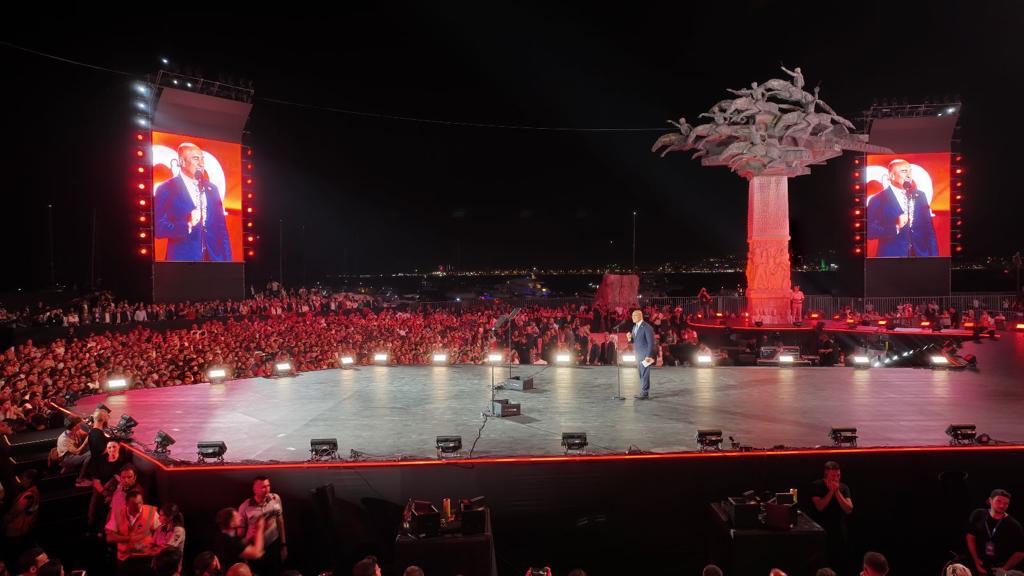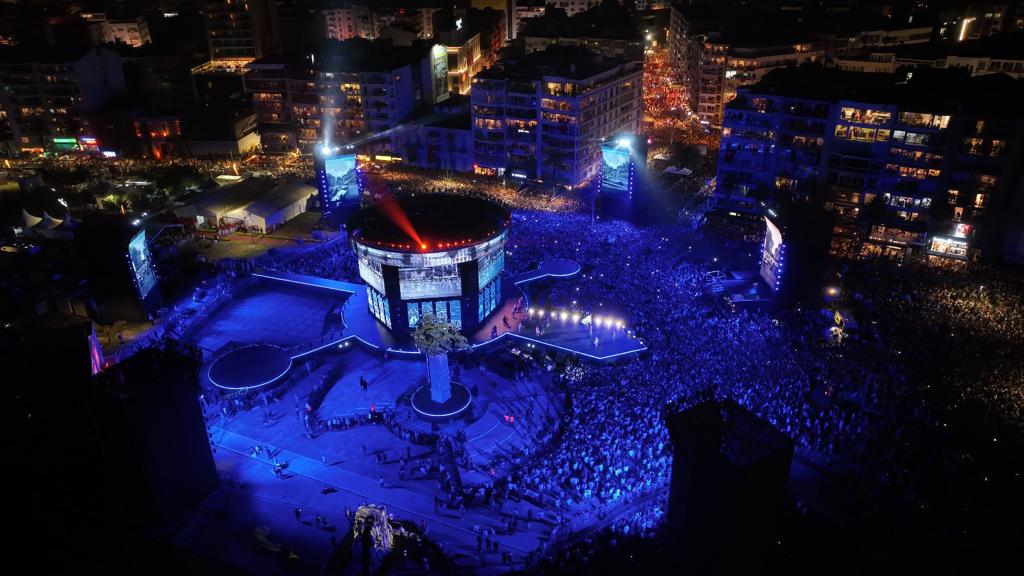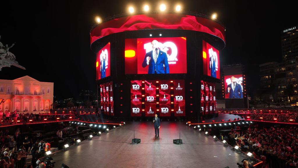 Daha sonra İzmirlilerin 100. yıl coşkusunu paylaşmak üzere Türkiye’nin megastarı Tarkan sahneye çıktı.
