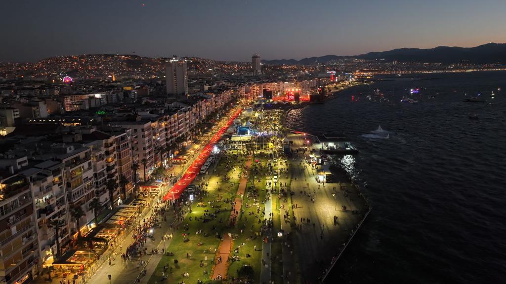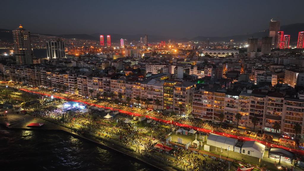 İzmir'in 100. yıl kurtuluş coşkusu 9 Eylül’de gün boyu süren etkinliklerin ardından akşam zirve yaptı. Alsancak Limanı’ndan başlayıp Gündoğdu Meydanı'nda sona eren Fener Alayı yürüyüşünün ardından İzmirliler, Kordon'u adeta gelincik tarlasına çevirdi. Alandaki izleyiciler DJ Ersin ile birlikte şarkılar söyledi. Coşkuya Türk bayrakları ve telefon ışıkları eşlik etti. Saatler 21.00’i gösterdiğinde Türkiye’de bugüne dek sergilenmiş en büyük sahne şovlarından biri başladı. 180 dansçının katılımıyla artırılmış gerçeklik destekli işgal ve kurtuluşun canlandırıldığı interaktif teatral gösteri gönüllere taht kurdu. Toplam bin 300 metrekare led ekranın kullanıldığı şov, bu bakımdan Türkiye tarihinde yapılan en büyük prodüksiyon oldu. İzmir Büyükşehir Belediye Başkanı Tunç Soyer ve eşi Neptün Soyer’in ev sahipliğindeki tarihi gösteriye Cumhuriyet Halk Partisi Genel Başkanı Kemal Kılıçdaroğlu ile eşi Selvi Kılıçdarğolu, CHP genel başkan yardımcıları, milletvekilleri, il ve ilçe belediye başkanları, siyasi partilerin başkanları ile temsilcileri, devlet erkanı, sivil toplum kuruluşları, odalar, derneklerin başkanları ile temsilcileri, sanatçılar, gazeteciler de katıldı.