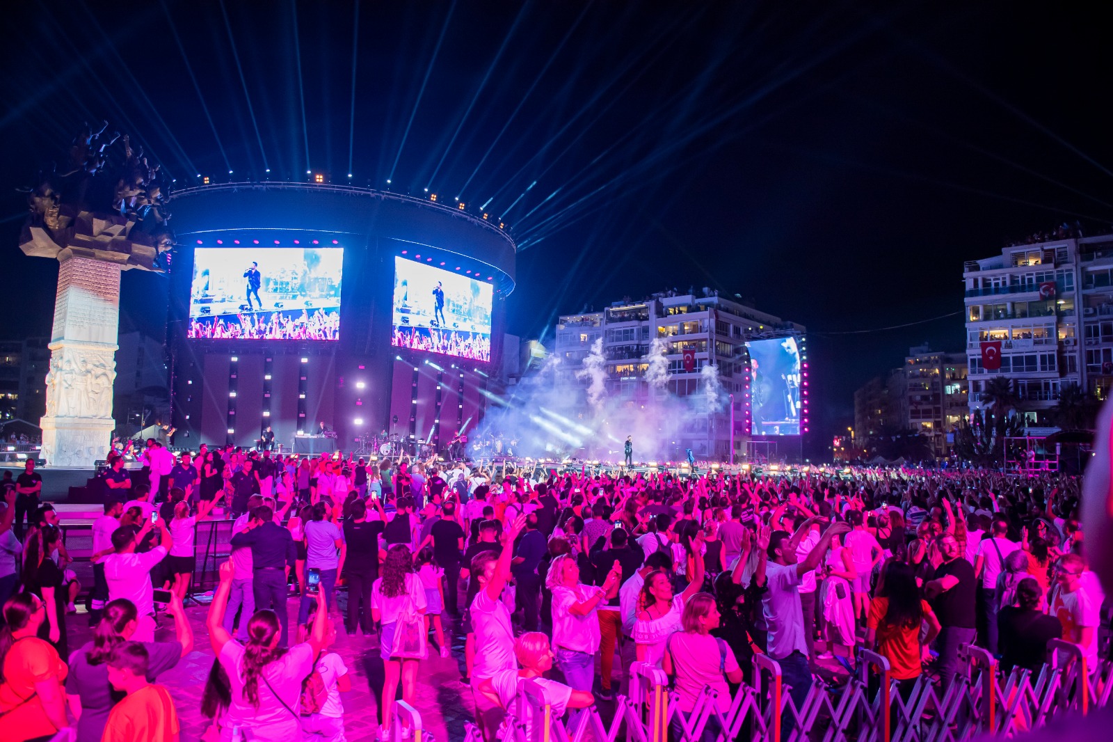 İzmir Büyükşehir Belediyesi’nin kentin kurtuluşunun 100’üncü yıl dönümü nedeniyle organize ettiği 9 Eylül kutlamaları megastar Tarkan’ın konseriyle taçlandı. Gündoğdu Meydanı’nda kurulan dev sahneden Tarkan, yüz binlerce İzmirliye coşku dolu saatler yaşattı.