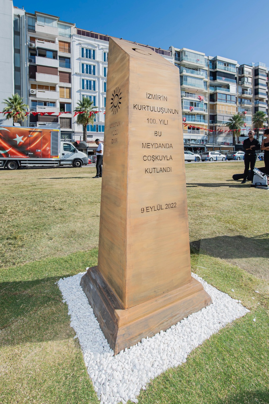 İzmir Büyükşehir Belediye Başkanı Tunç Soyer kentin kurtuluş etkinlikleri kapsamında Gündoğdu Meydanı'na yerleştirilen 100. Yıl Anı Taşı'nın açılışını yaptı. Başkan Soyer, “Cumhuriyet Meydanı'nda 10. yıl hatırasına dikilen buna çok benzeyen bir anıt var. İstedik ki 100. yılın, bu görkemli kutlamanın da bir hatırası bu meydanda olsun” dedi.