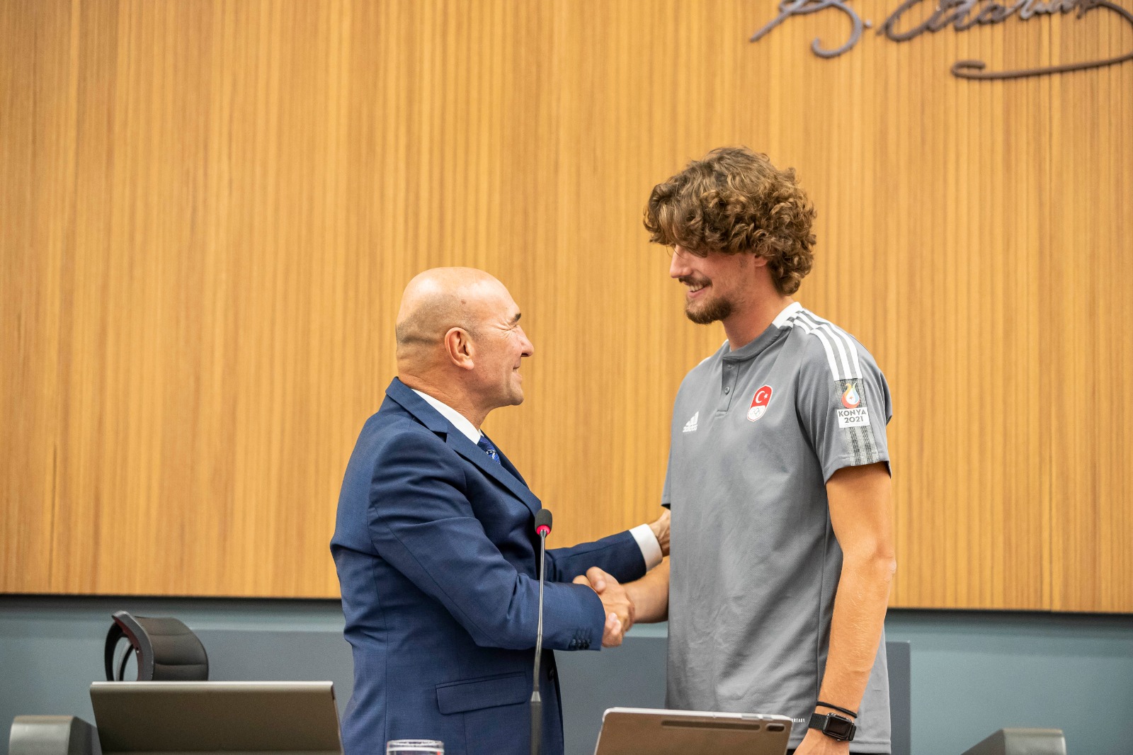 Başkan ayrıca Soyer, Kolombiya'nın Cali şehrinde düzenlenen Dünya 20 Yaş Altı Atletizm Şampiyonası'nda 400 metre engelli finalinde altın madalya kazanarak dünya şampiyonu olan İsmail Nezir'i tebrik etti.