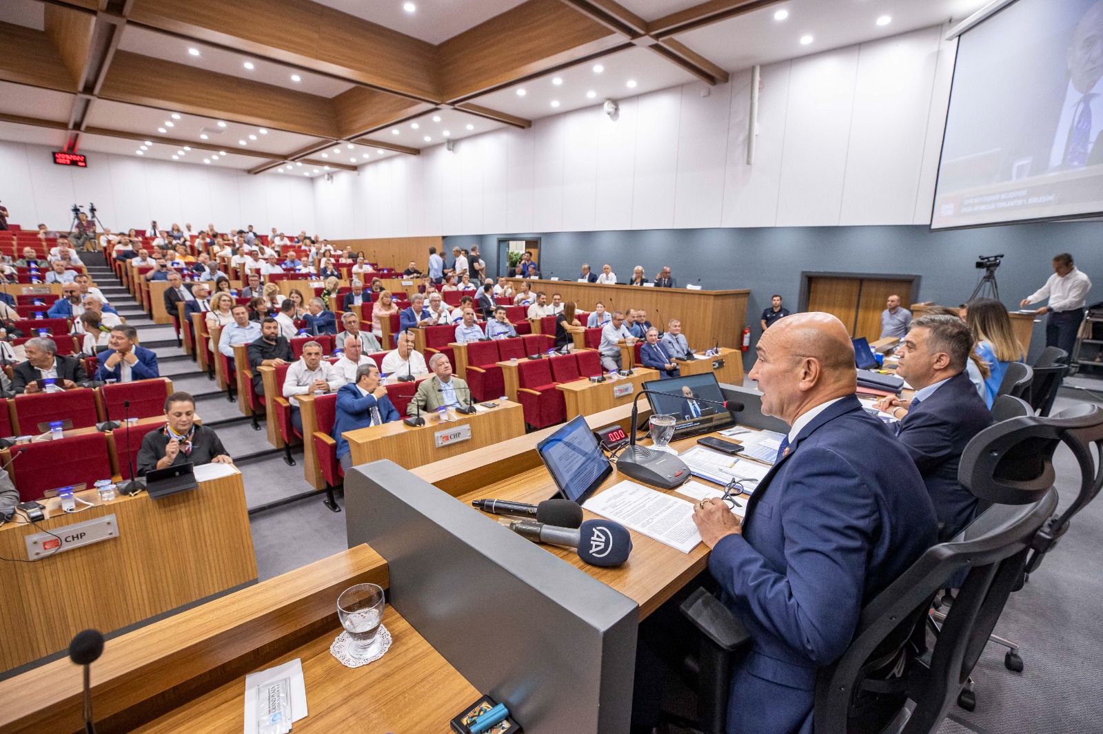 Üyeler daha önce basılı olarak dağıtılan meclis gündemini artık oturdukları masaların üzerindeki tabletlerden takip ediyor. Böylece gündem için basılan 30 bine yakın kağıttan tasarruf sağlanıyor. Ayrıca yeni meclis salonunda üyelerin konuşma süreleri ekrana yansıtılarak zamanın adil kullanılmasına katkı amaçlanıyor.