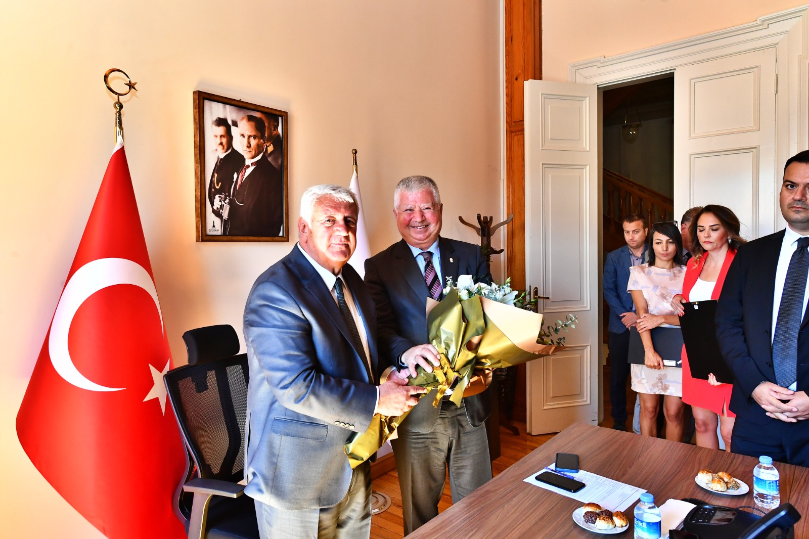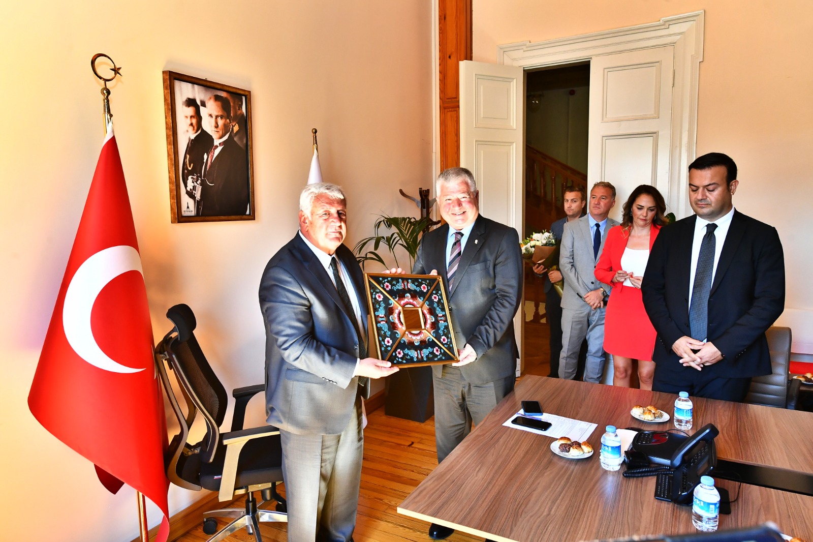 İzmir Esnaf ve Sanatkârlar Odaları Birliği Başkanı Zekeriya Mutlu ve Ahilik Komitesi üyeleri, 35. Ahilik Haftası nedeniyle İzmir Büyükşehir Belediyesi Başkan Vekili Mustafa Özuslu’yu ziyaret etti. Özuslu, ahilik felsefesinin önemli olduğunu belirterek esnaf teşkilatının yanında olduklarını söyledi.