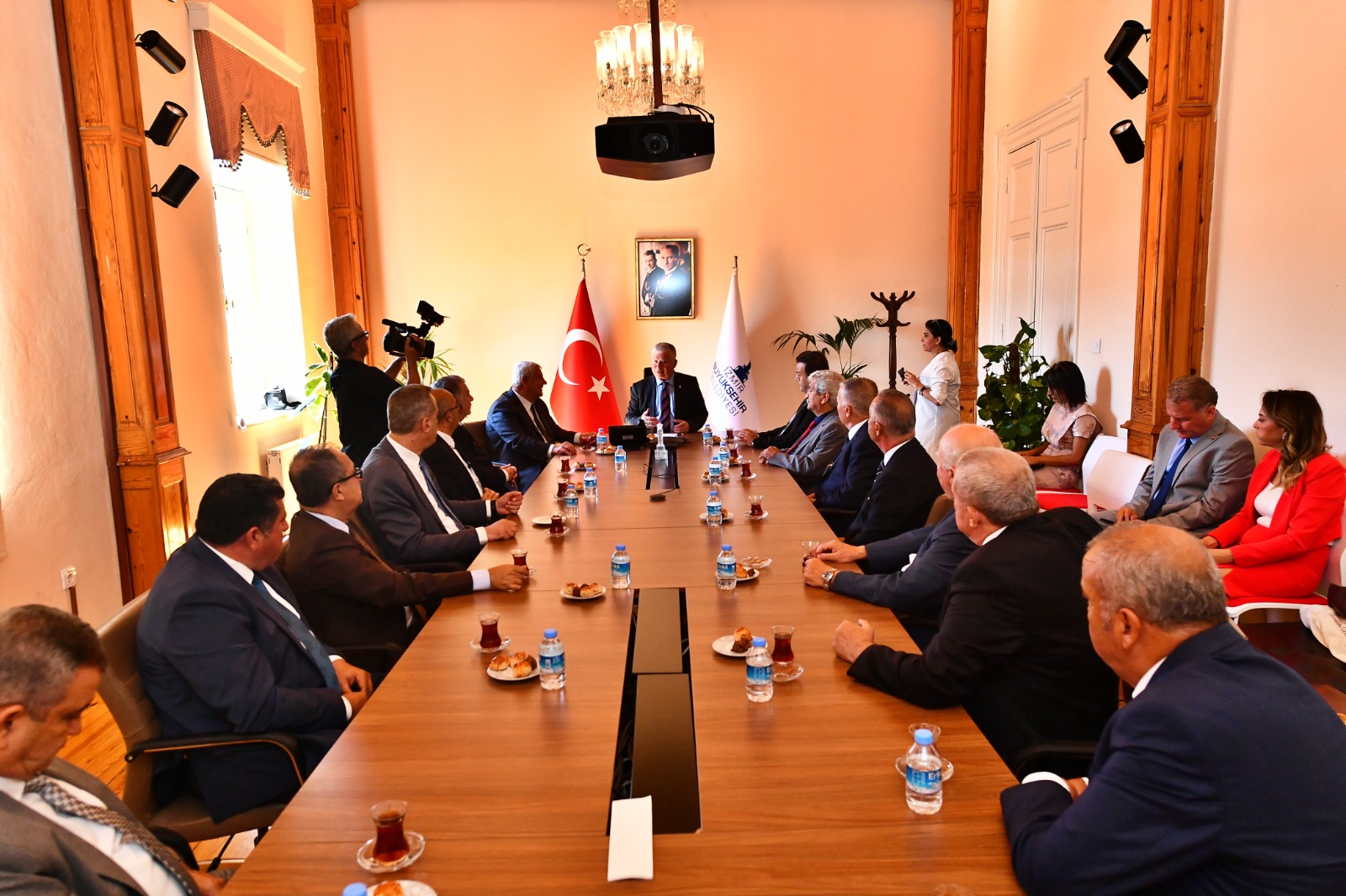İzmir Esnaf ve Sanatkârlar Odaları Birliği (İESOB) Başkanı Zekeriya Mutlu ve Ahilik Komitesi üyeleri, 12-18 Eylül tarihleri arasında kutlanan 35. Ahilik Haftası nedeniyle İzmir Büyükşehir Belediyesi'ni ziyaret etti. Egemenlik Evi'nde konukları ağırlayan İzmir Büyükşehir Belediyesi Başkan Vekili Mustafa Özuslu, "Esnaf teşkilatımızla burada birlikte olmak şereftir. Önemli bir hafta. Bugünden başlayıp bir hafta boyunca ülkenin her yerinde kutlanacak. Ahilik felsefesi onun o kutsal görevi anlatılacak” dedi.