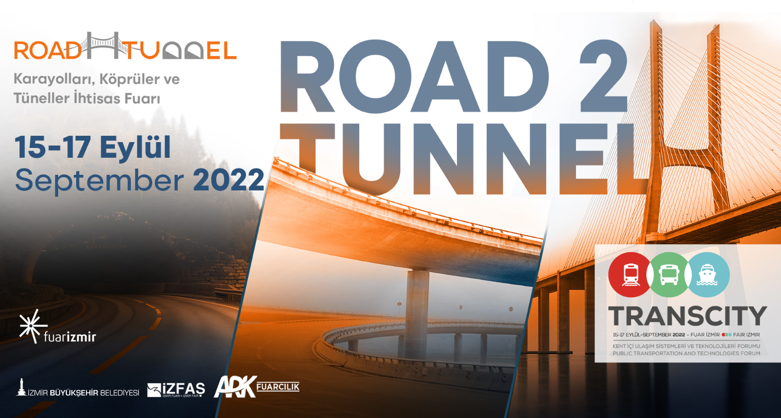 İzmir Büyükşehir Belediyesi ev sahipliğinde İZFAŞ, Maven Etkinlik ve Fuarcılık, ARK Fuarcılık işbirliğiyle 15-17 Eylül tarihlerinde düzenlenen Road2Tunnel-5. Uluslararası Karayolları, Köprüler ve Tüneller İhtisas Fuarı’nda altyapı, yol, köprü ve tünel gibi büyük bütçeli yatırımlar fuar ziyaretçileriyle buluşacak.