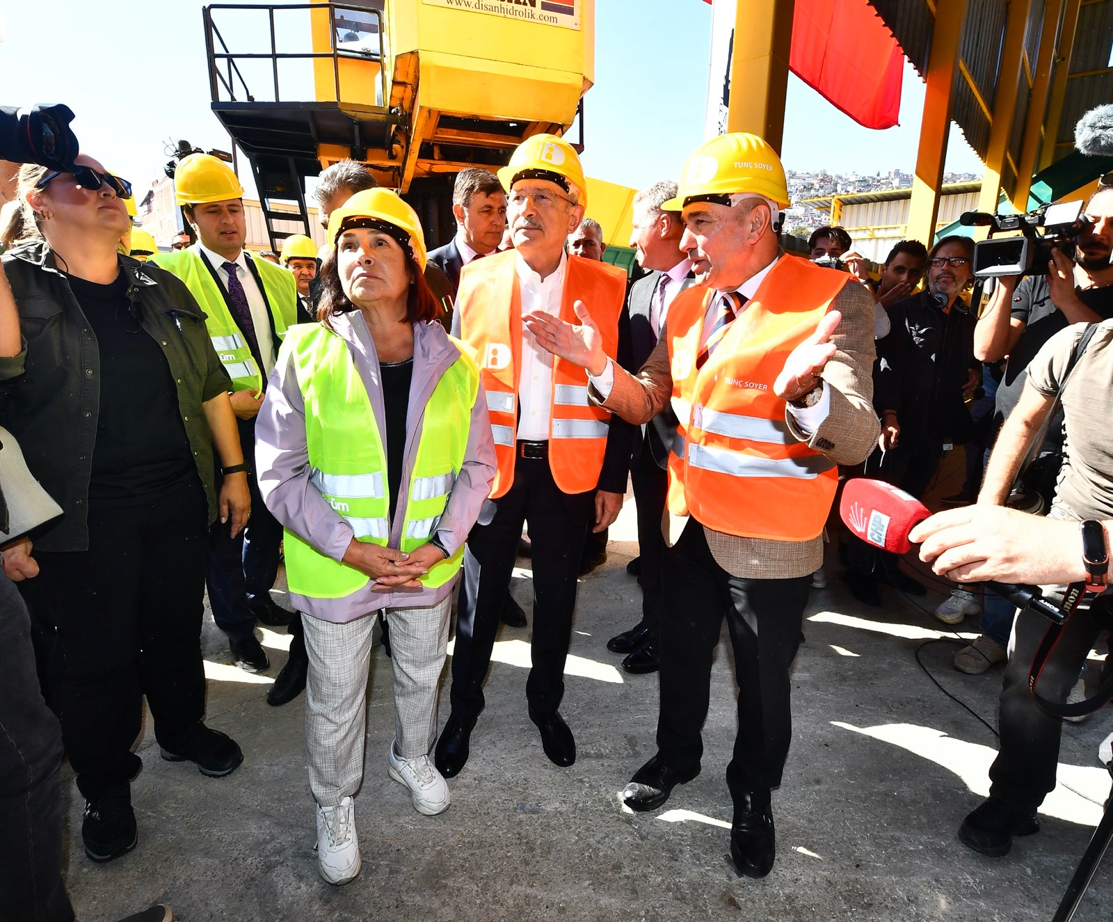 Genel Başkan Kılıçdaroğlu ve Başkan Soyer beraberindeki heyetle tesiste incelemelerde bulunarak bilgi aldı.