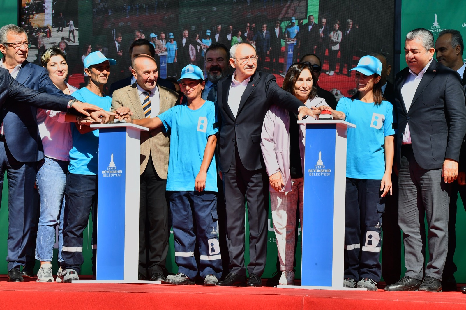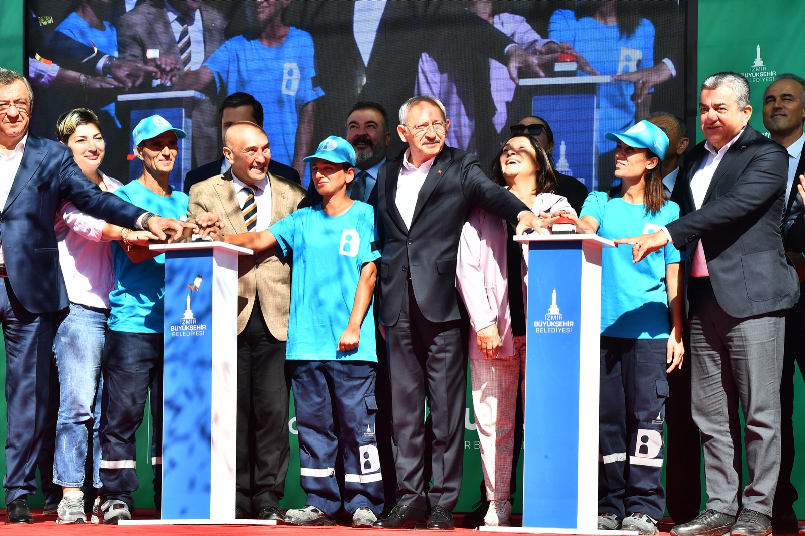 Sürdürülebilir kent hedefiyle çalışmalarını sürdüren İzmir Büyükşehir Belediyesi'nin ambalaj atıklarını ayrıştırmak için belediye iştiraki İzDoğa eliyle Konak'ta kurduğu İzDönüşüm Ambalaj Atığı Toplama ve Ayrıştırma Tesisi bugün törenle açıldı. Törene Cumhuriyet Halk Partisi (CHP) Genel Başkanı Kemal Kılıçdaroğlu ile eşi Selvi Kılıçdaroğlu, İzmir Büyükşehir Belediye Başkanı Tunç Soyer, CHP İzmir İl Başkanı Deniz Yücel, CHP’li yöneticiler, milletvekilleri, il ve ilçe belediye başkanları, sivil toplum kuruluşlarının temsilcileri, muhtarlar, belediye meclis üyeleri, siyasi parti temsilcileri, tesis çalışanları ve vatandaşlar katıldı.