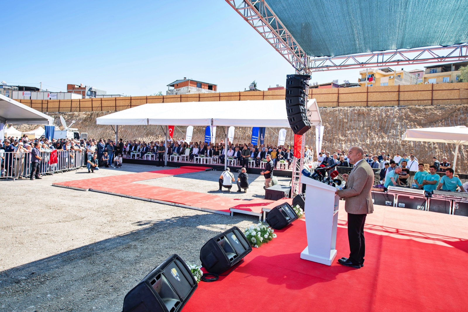 Törende konuşan İzmir Büyükşehir Belediye Başkanı Tunç Soyer, İzmir’in insanca ve doğayla uyumlu dönüşümünde yepyeni bir sayfa daha açtıklarını söyledi. İzmir’in en güzel mahallelerinden birini kuracaklarını vurgulayan Başkan Tunç Soyer, “İzmir’in yaşlı yapı stoku şehrimizin en temel sorunlarından biri. Bunu çok iyi biliyoruz. Yarım yüzyılı aşan bir sürede oluşmuş bu plansızlığı düzenlemek ise hiç kolay değil. Biz bu sorunu çözmek, her İzmirlinin hak ettiği güvenli ve sağlıklı konutlara kavuşmasını sağlamak için altı bölgede, 248 hektarlık alanda çalışmalarımıza başladık” dedi. Gaziemir, Ege Mahallesi, Uzundere, Ballıkuyu, Çiğli Güzeltepe ve Örnekköy’de İzmir’in dönüşümünü adım adım gerçekleştirdiklerini anlatan Başkan Soyer, genç bir İzmir inşa etmek için var güçleriyle çalıştıklarını belirtti. Başkan Soyer,