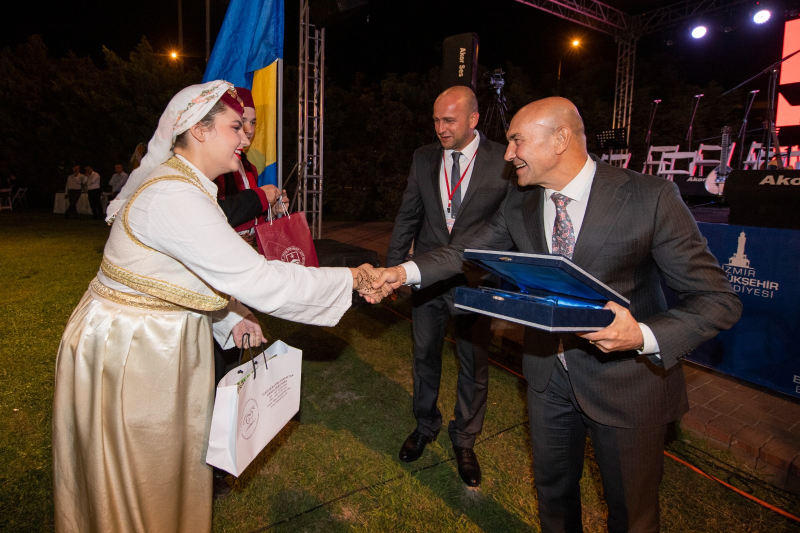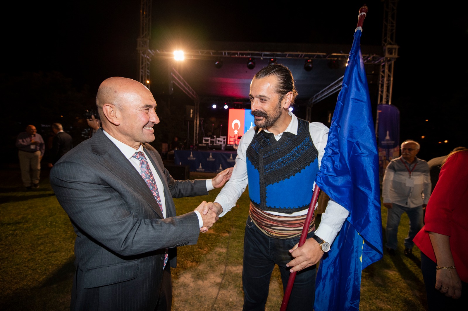 İzmir Büyükşehir Belediyesi’nin bu yıl 16’ıncısını düzenlediği Balkanlılar Halk Dansları ve Kültür Festivali, 12 ülke halk dansları ekiplerini Balkan Kültür Gecesi’nde buluşturdu. Törende konuşan İzmir Büyükşehir Belediye Başkanı Tunç Soyer, “Bugün yalnızca bu şehrin belediye başkanı olarak değil Piriştine’den Ege’ye yerleşen Arnavut Mustafa Çavuş’un torunu olarak aranızdayım. İzmir’in manevi hudutları yüzölçümünden daha büyük. Bu sadece bir festival değil. Buluşmamız, İzmir’in Ata’sına bağlılığını gösterdiği bir sadakat meydanıdır” dedi.