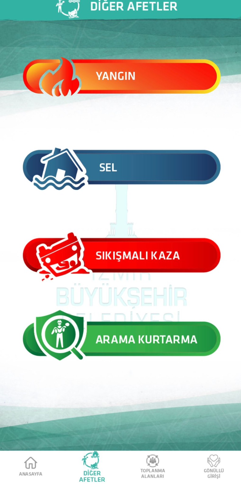 30 Ekim depreminin ardından olası afetlerde zor durumda kalanlarla iletişim sağlayarak onlara ulaşmak amacıyla “Acil İzmir” mobil uygulamasını geliştiren İzmir Büyükşehir Belediyesi, uygulamayanın kapsadığı afet türleri arasına yangınları da ekledi. Artık uygulamada “Yangına Şahit Oldum” ve “Yangına Maruz Kaldım” butonları bulunuyor. Yangına Şahit Oldum butonu aracığıyla yangın bölgesinin fotoğrafı ve konumu İtfaiye Dairesi Başkanlığı ile paylaşılabiliyor. “Yangına Maruz Kaldım” butonuna basıldığında ise basan kişinin konumu otomatik olarak itfaiye ile paylaşılıyor ve hızla yangına müdahale ediliyor.
