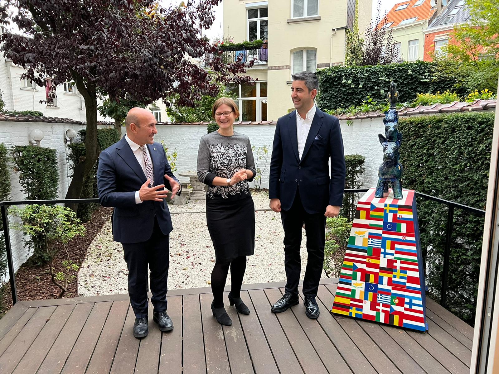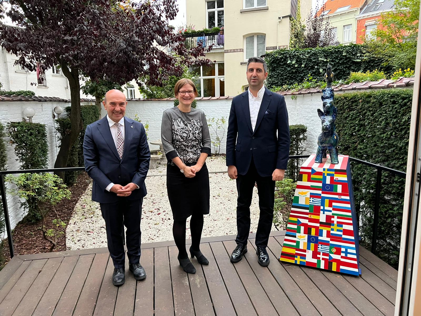 Başkan Soyer, İzmir’in kardeş kenti Bremen'in 1987'de açılan Brüksel ofisini de ziyaret etti. Bremen Eyaleti Brüksel Temsilciliği Başkanı Tanja Baerman ile görüşen Soyer, küresel sorunlara yerelde üretilecek çözümlerin ve birlikte çalışmanın önemine değinerek “Eğitim, spor ve kültür gibi alanlarda kentler ve insanlar arasındaki ilişkileri güçlendirecek işbirlikleri geliştirmeliyiz. İnsanlar, kültürler arasında kurulan bağlar toplumların barış içinde yaşamasının temel güvencesidir” dedi. Bremen Belediye Başkanı Dr. Andreas Bovenschulte’nin kalabalık bir heyet ile İzmir’e geldiğini, önümüzdeki ay da kendilerinin ziyarete gideceğini söyleyen Soyer, gençlikten tarıma turizmden teknoloji ve akıllı şehirlere kadar bir dizi konuda karşılıklı işbirliği fırsatları üzerine konuşacaklarını belirtti.
