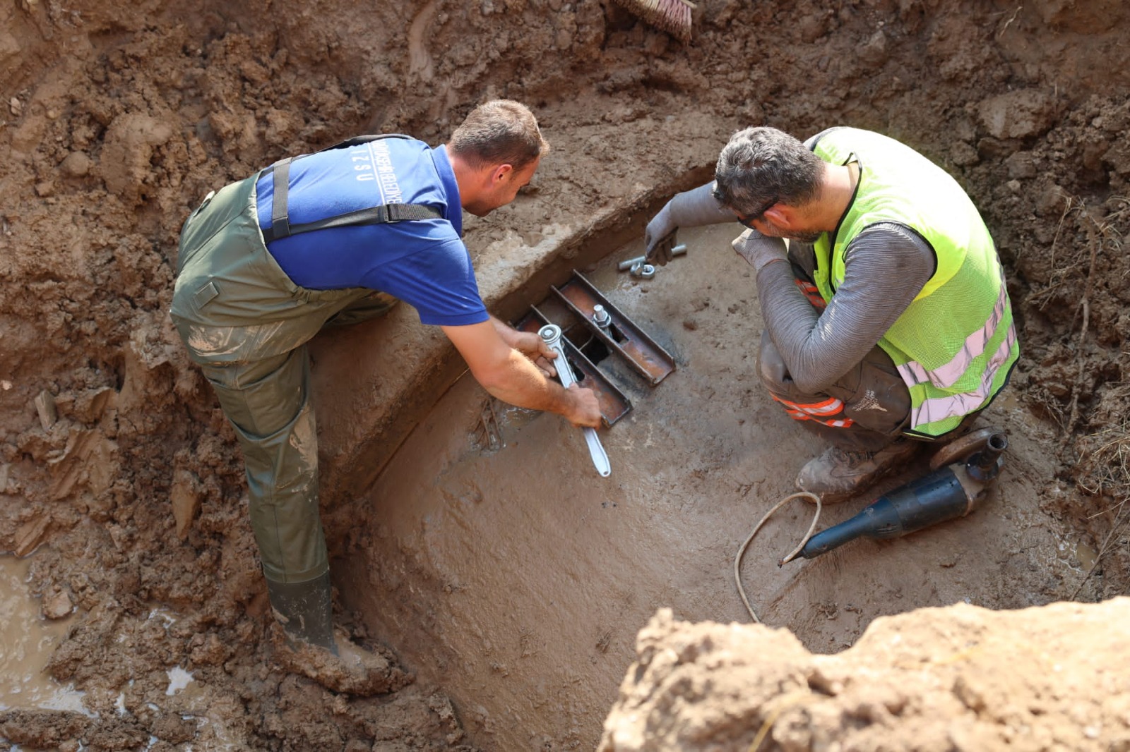 Kuzey kaynaklarından İzmir’e su sağlayan, Karşıyaka, Çiğli, Bayraklı, Bornova ve kısmen Konak ilçelerini besleyen 2200 mm çaplı hatta GDZ Elektrik Dağıtım A.Ş.’nin kablo döşemek için yatay delgi yaparken neden olduğu arıza giderilmeye çalışılıyor. İZSU ekipleri bir an önce isale hattını devreye almak için içten tamir yöntemi ile arızayı gidermek için kesintisiz mesai yapıyor. Çalışmanın sabaha kadar tamamlanması ve hatta su verilmesi planlanıyor.