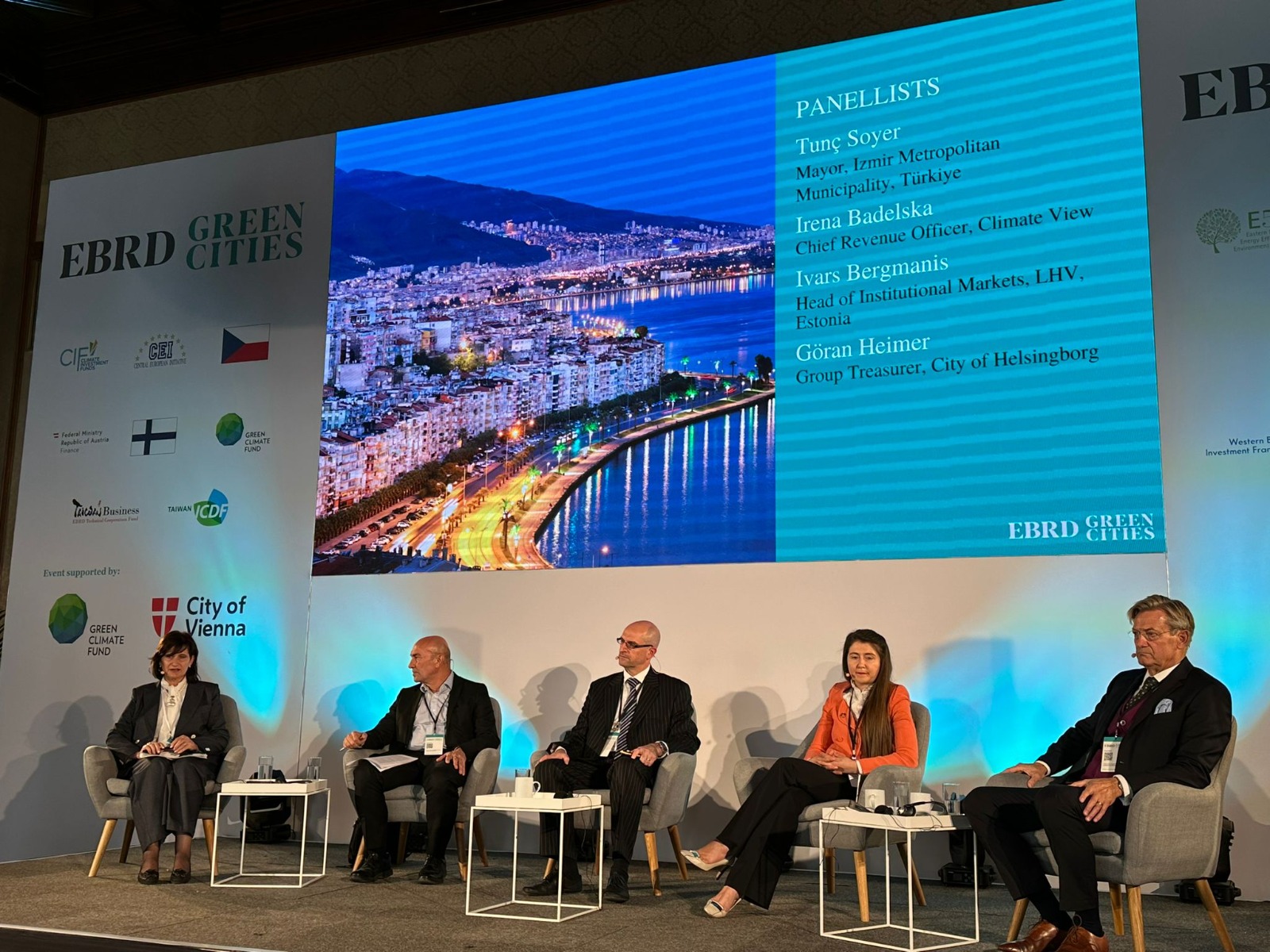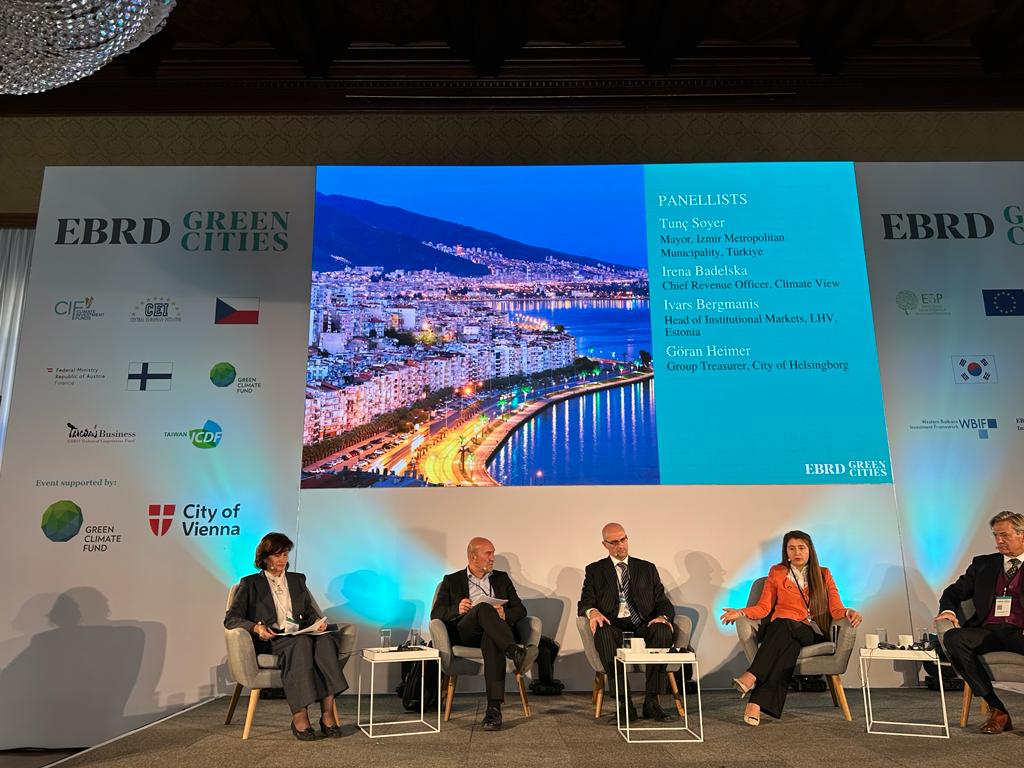 İzmir Büyükşehir Başkanı Tunç Soyer, Viyana’daki Avrupa İmar ve Kalkınma Bankası (EBRD) Yeşil Şehirler Konferansı’nda konuştu. İzmir’in EBRD hibesiyle Yeşil Şehir Eylem Planı’nı Türkiye’de ilk hazırlayan kent olduğunu belirten Başkan Soyer, “İzmir’de hayata geçirdiğimiz projelerde başarı kriterimiz kentin doğasıyla, insanıyla uyumlu işler yapmak” dedi. Başkan Soyer kentlerdeki altyapının doğayla uyumlu hale getirilmesi için kritik rol üstlenen finans kuruluşlarının şehirleri daha çok desteklemesi gerektiğini söyledi.