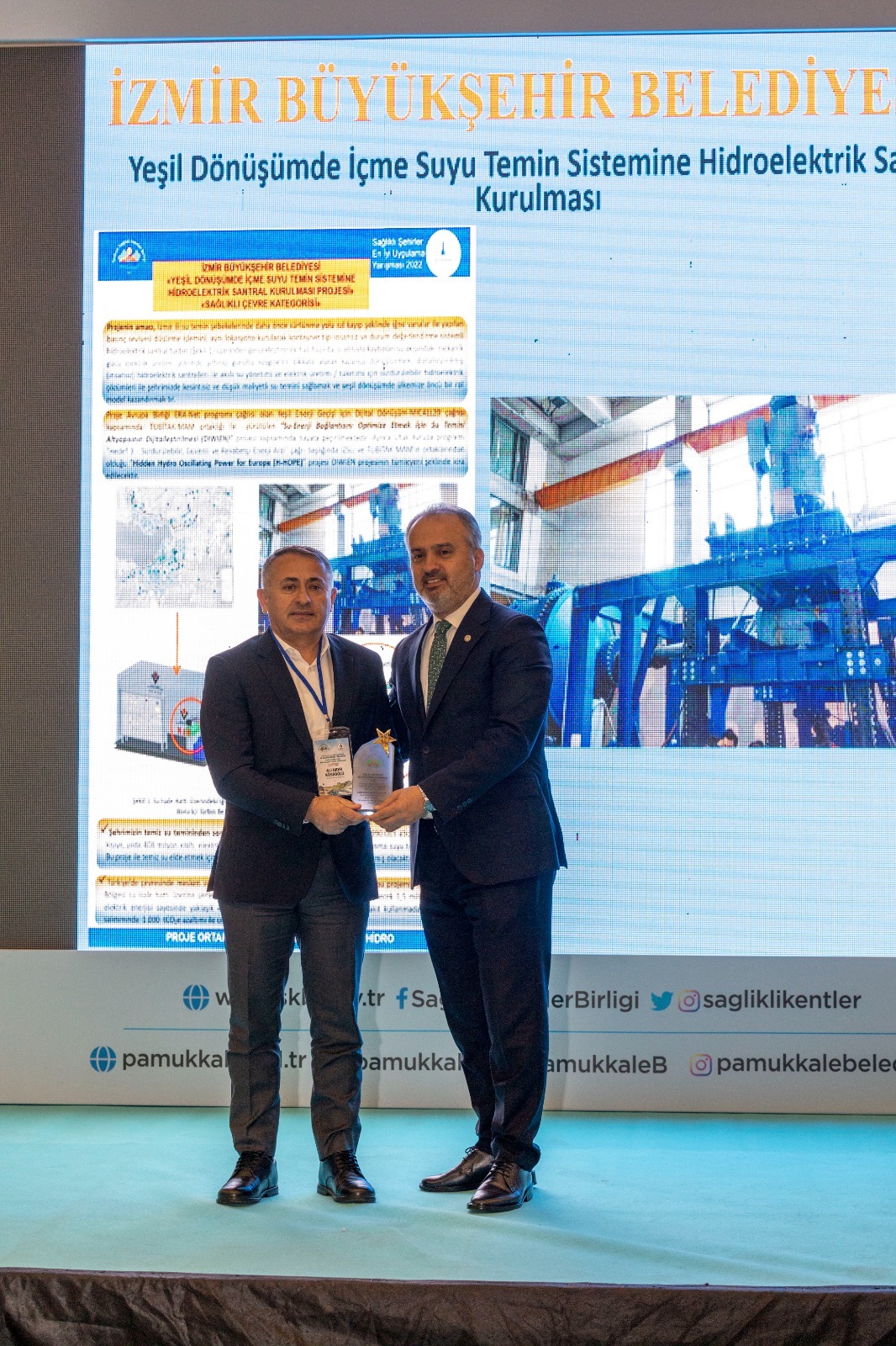 İzmir Büyükşehir Belediyesi İZSU Genel Müdürlüğü’nün içme suyunun elde edilmesinde elektrik tüketimini azaltacak yeşil dönüşüm projesi, “Sağlıklı Şehirler En İyi Uygulama Yarışması”nda ödüle layık görüldü.