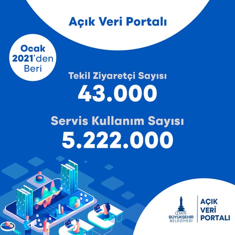 İzmir Büyükşehir Belediyesi Açık Veri Portalı 160 veri setini uluslararası açık veri metadata şemasına uygun şekilde yayımlıyor. İzmir ile ilgili farklı kategorilerde veri setlerinin bulunduğu portal, açıldığı Ocak 2021’den bu yana 5 milyon 222 bin kez görüntülendi.