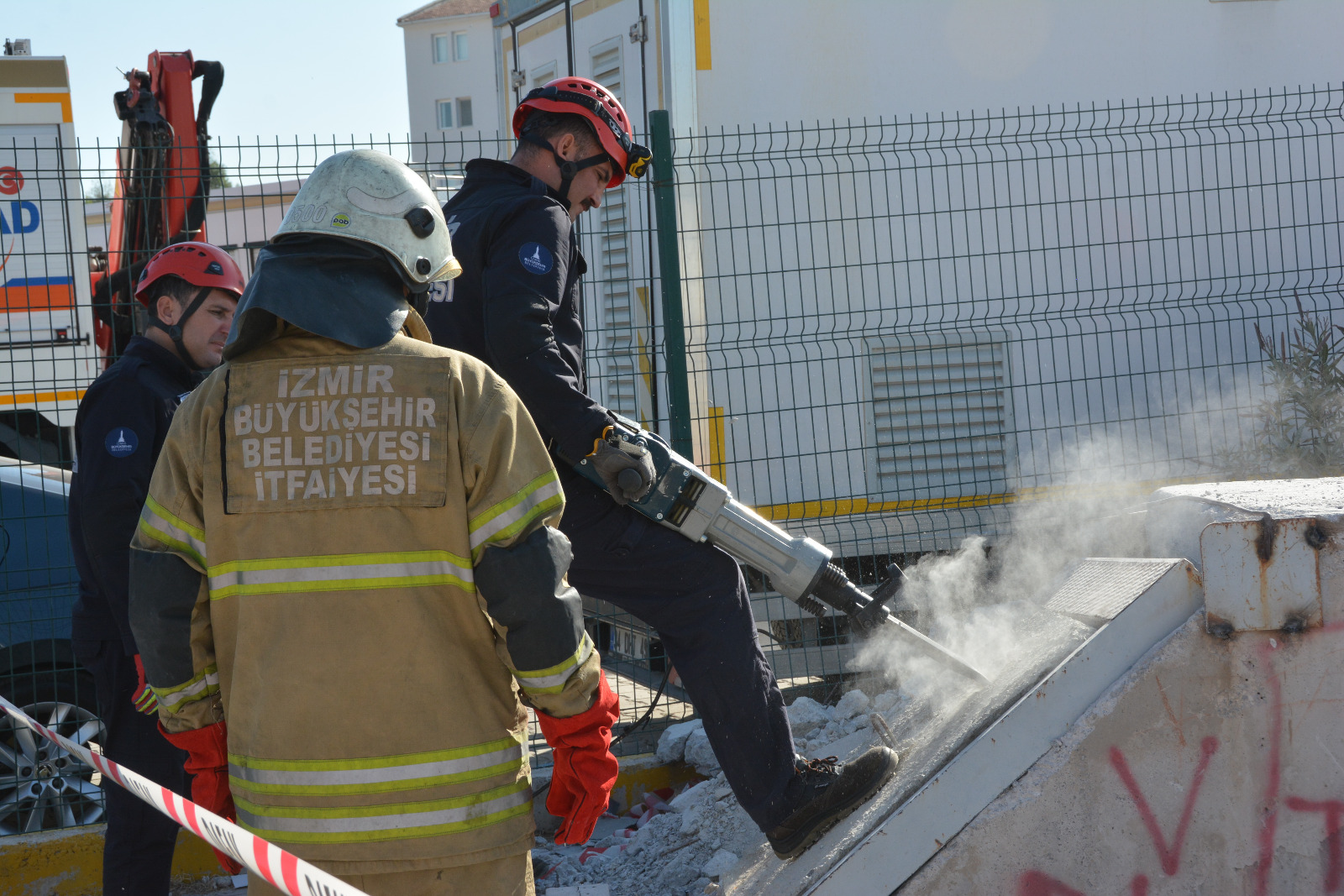 İzmir Valisi Yavuz Selim Köşger’in de katıldığı tatbikatların ilki AFAD İzmir Arama Kurtarma Birlik Müdürlüğü Enkaz Eğitimi Alanı’nda enkazda arama kurtarma çalışması şeklinde yapıldı. Aynı uygulama Buca’da riskli yapı olarak yıkımı devam eden Bornova İzmir Esnaf Ve Sanatkarlar Odaları Birliği Mesleki ve Teknik Anadolu Lisesi (İESOB) eski Pansiyon Binası’nda da devreye alındı.