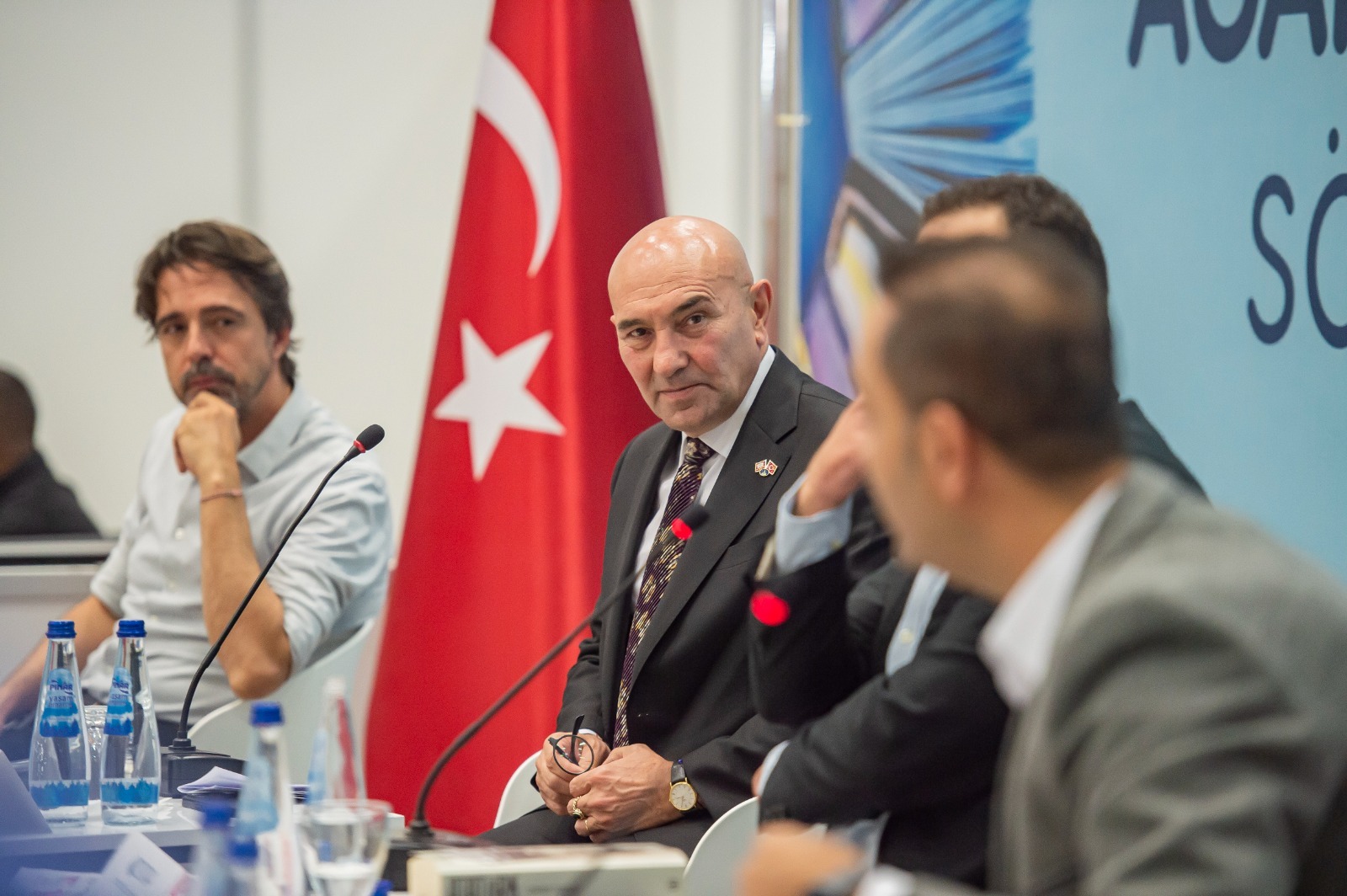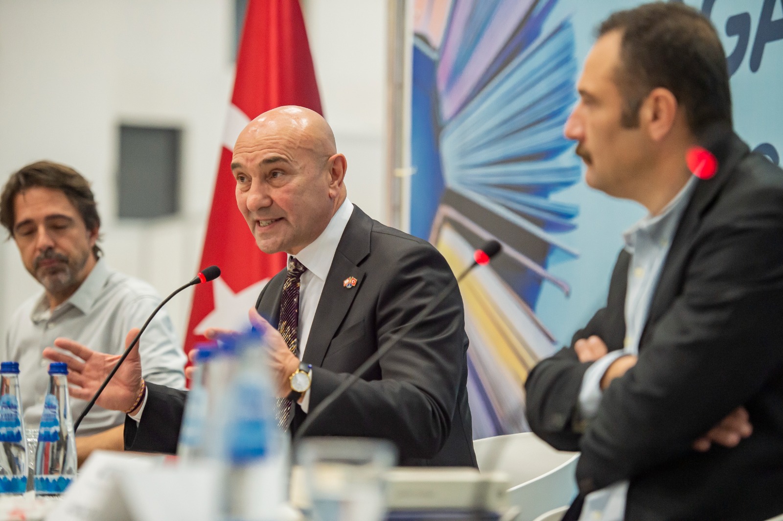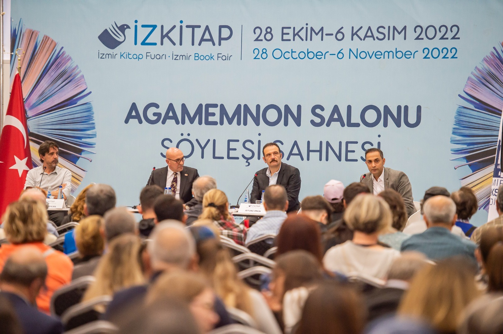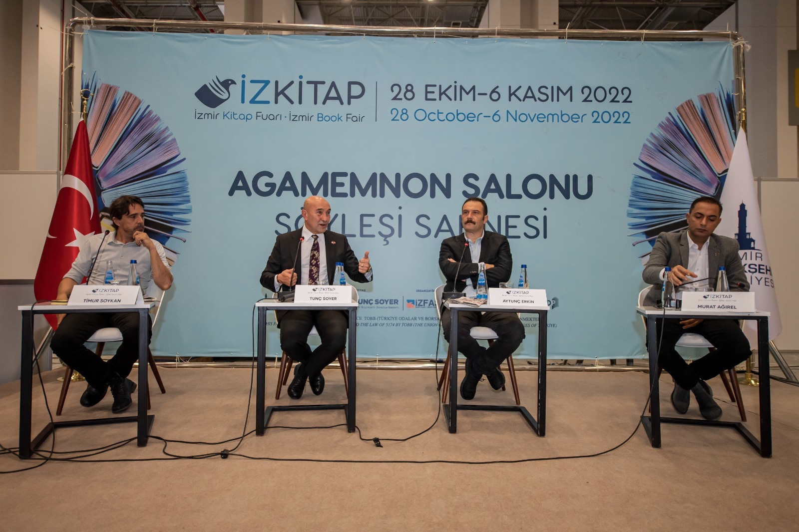 İzmir Büyükşehir Belediye Başkanı Tunç Soyer, Cumhuriyet’in kuruluşunun 99. yıl dönümü nedeniyle Fuar İzmir’deki İzmir Kitap Fuarı (İZKİTAP) kapsamında düzenlenen “100’üncü Yılında Türkiye Cumhuriyeti” söyleşisine katıldı. Gazeteciler Murat Ağırel, Timur Soykan ve Aytunç Erkin’in yer aldığı söyleşide konuşan Başkan Tunç Soyer, 29 Ekim Cumhuriyet Bayramı’nı kutlayarak sözlerine başladı.