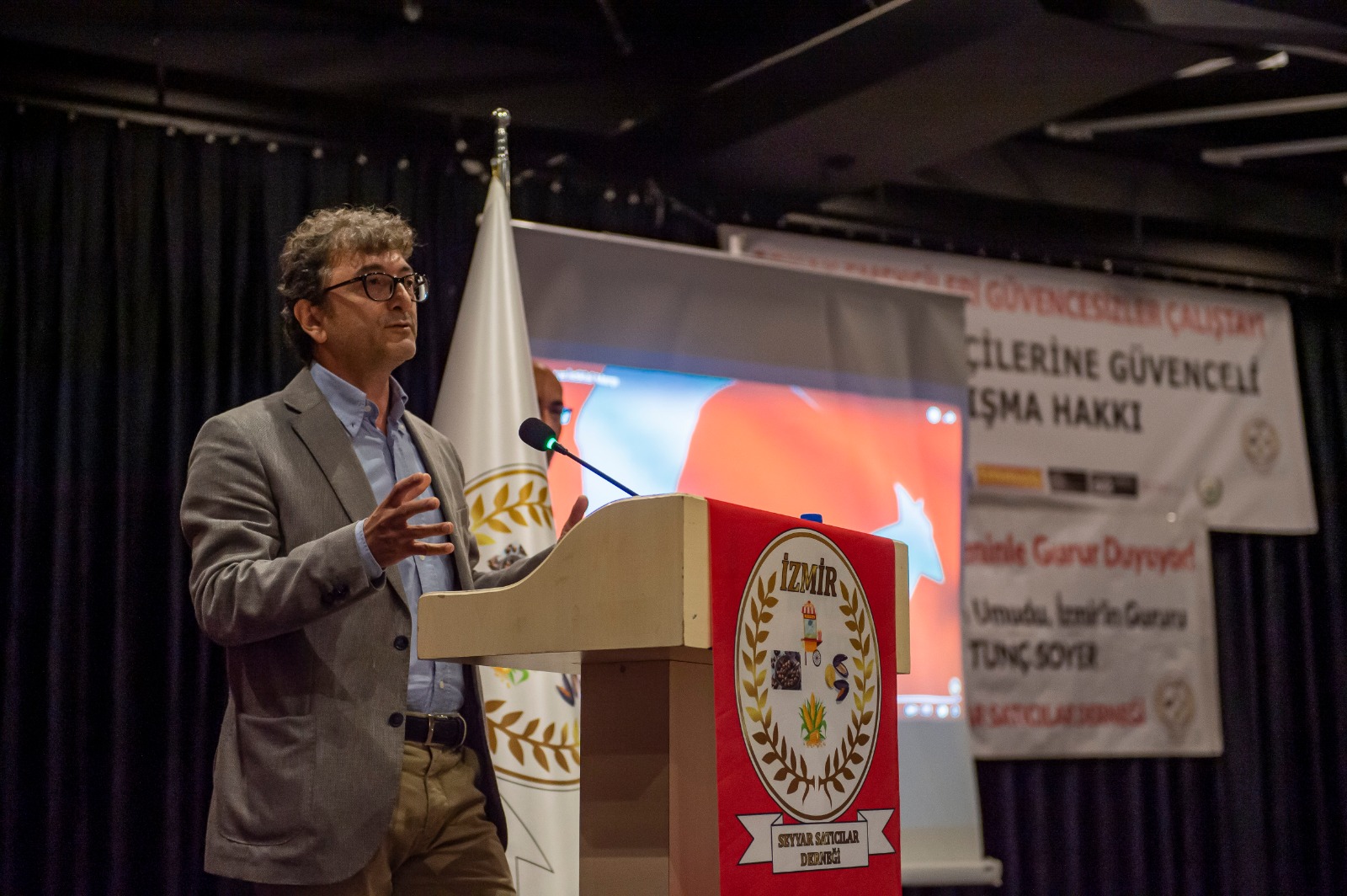 İzmir Büyükşehir Belediye Başkanı Tunç Soyer, güvencesiz çalışan sokak emekçileriyle bir araya geldi. İzmir Seyyar Esnaf ve Sanatkarlar Meclisi tarafından düzenlenen buluşmada kooperatif kurma önerisini dile getiren Soyer, “Yerelde yaptıklarımız ve yapacaklarımızla Türkiye’deki bu bakış açısını değiştirecek ve bu güvencesiz insanlar için çareler üreteceğiz” dedi.