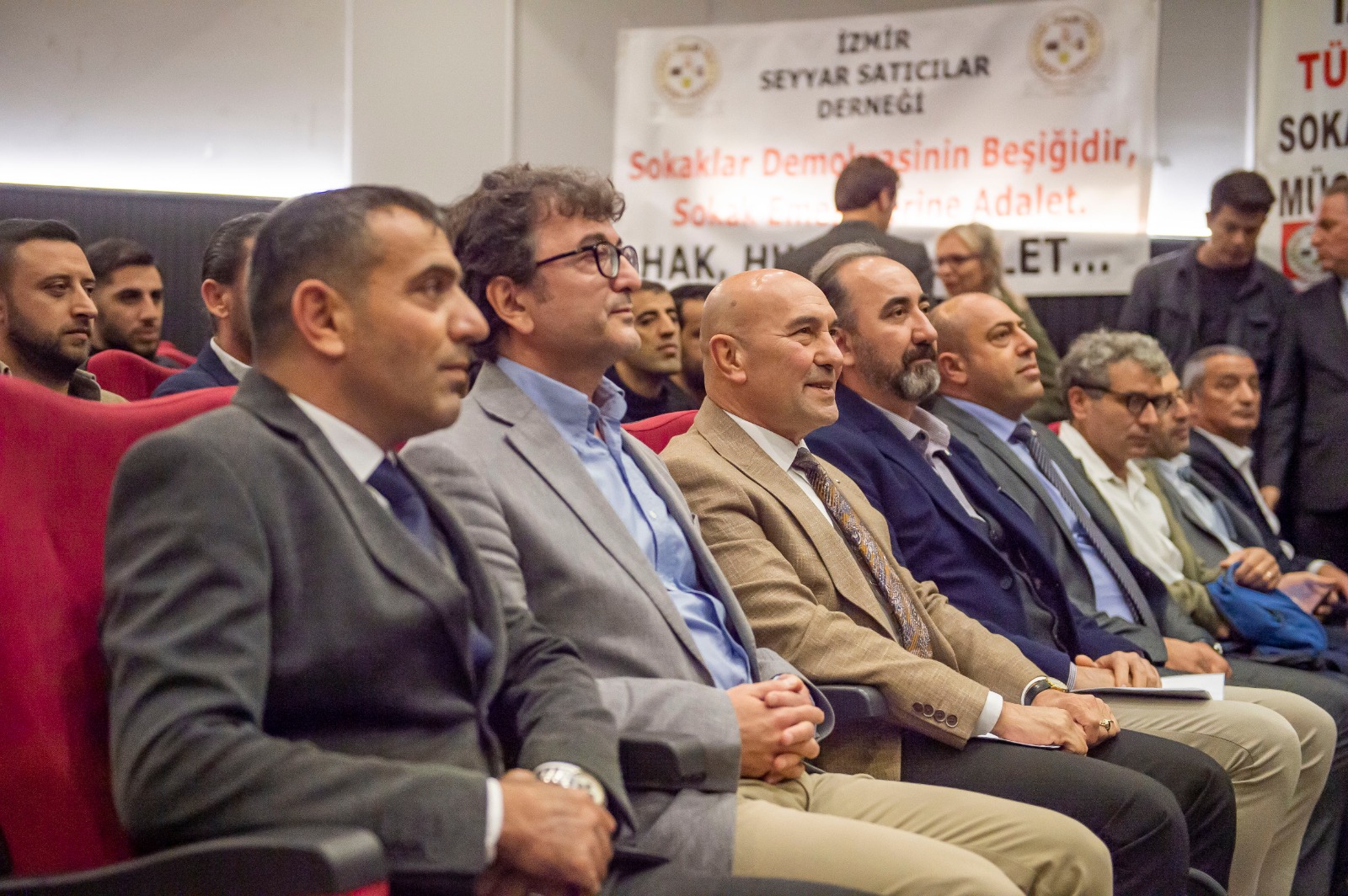 İzmir Seyyar Esnaf ve Sanatkarlar Meclisi Başkanı Evren Laçin ise 2019 yerel seçimler sürecine değinerek “Tunç Soyer bizim için bir şanstı. Arka sokaklardan bahsetti. Arka sokaklar burada. Biz örgütlenmeye başladığımızda bize yapamazsınız demişlerdi. 40 ilde bir araya geldik. Bu devam edecek” dedi.