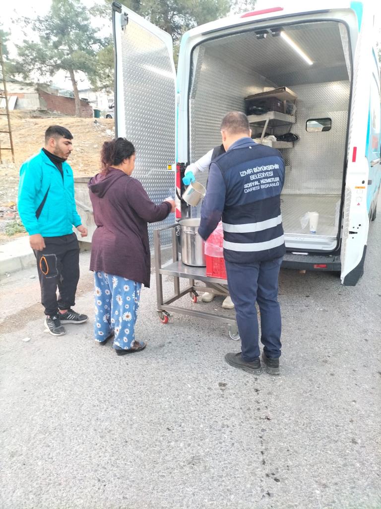 Buca'da evleri tahliye edilen yurttaşlara İzmir Büyükşehir Belediyesi Sosyal Hizmetler Dairesi Başkanlığı tarafından battaniye ulaştırıldı.