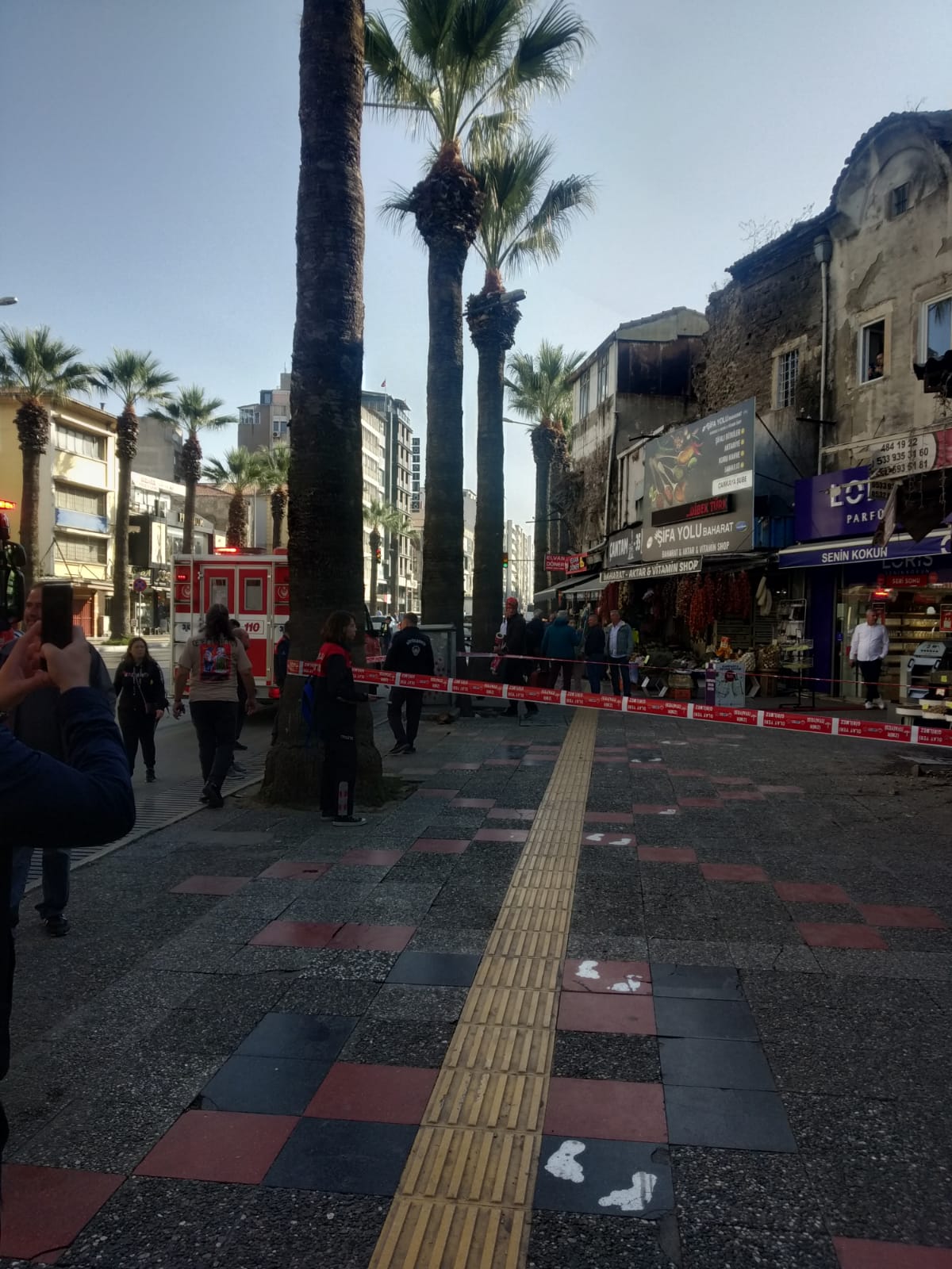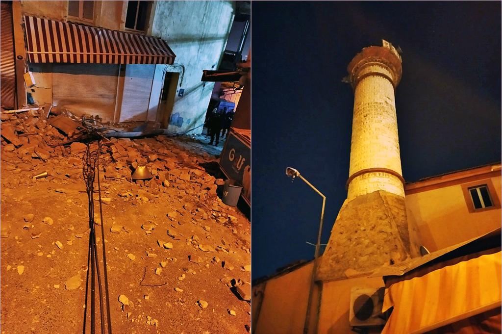Depremden dolayı minaresi yıkılan Selahattin Oğlu Camiisi'nin çevresine ekipler güvenlik önlemi aldı. Buca'da oturulamayacak durumda olan 4 adresteki yurttaşlar itfaiye ekiplerinin kontrolü eşliğinde tahliye edildi. Karşıyaka ilçesinde depremden dolayı bina dış cephesinden düşen sıva nedeniyle gerekli güvenlik önlemi alındı. Fevzi Paşa Bulvarı üzerindeki tarihi bir yapının duvarından dökülen taşların tehlikeye neden olmaması için binanın etrafına güvenlik şeridi çekildi. Fen İşleri Dairesi Başkanlığı da gerekli çalışma yapmak üzere Fevzi Paşa Bulvarı'na yönlendirildi.
