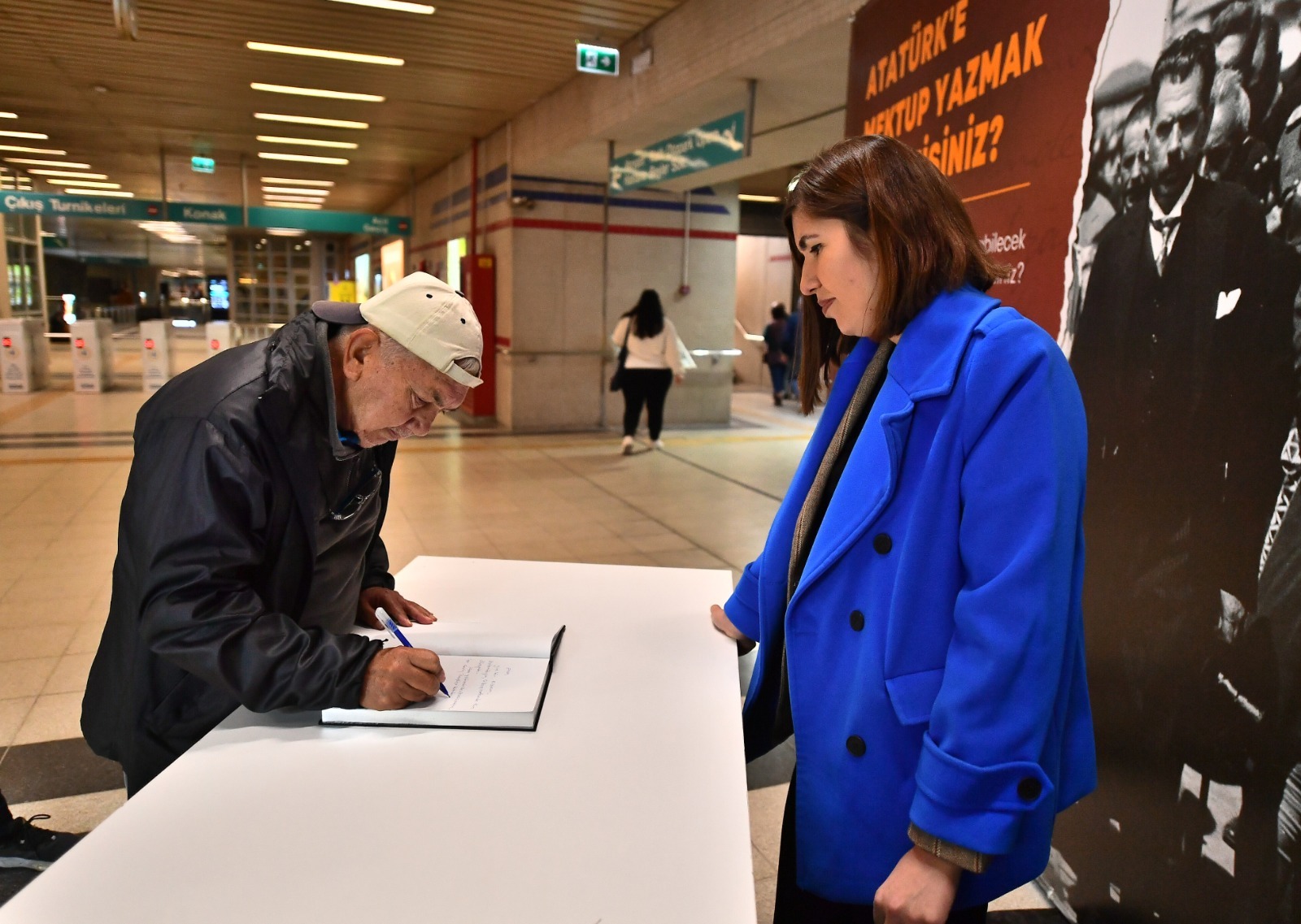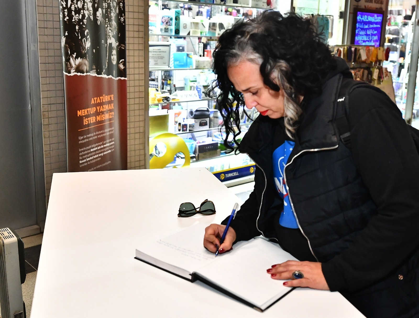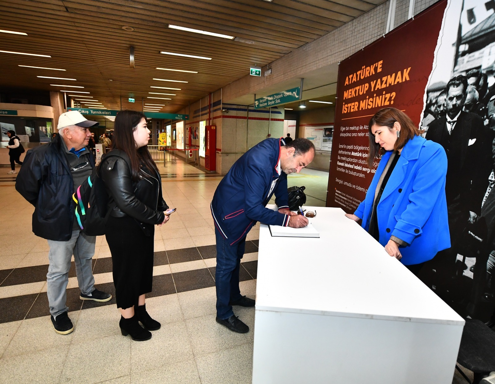 İzmirliler gün boyunca Konak, Ege Üniversitesi, Fahrettin Altay, Üçyol ve Çankaya metro istasyonlarında, Karşıyaka, Bostanlı, Konak, Alsancak vapur iskeleleri ile Şirinyer, Gaziemir, Halkapınar İZBAN istasyonlarındaki anı defterlerine duygularını aktarabilecek. Anı defterlerindeki satırlar Ahmet Piriştina Kent Arşivi ve Müzesi (APİKAM) tarafından “Senin Atatürk’ün” başlığıyla Konak Meydanı’ndaki sergi alanında ziyarete açacak.