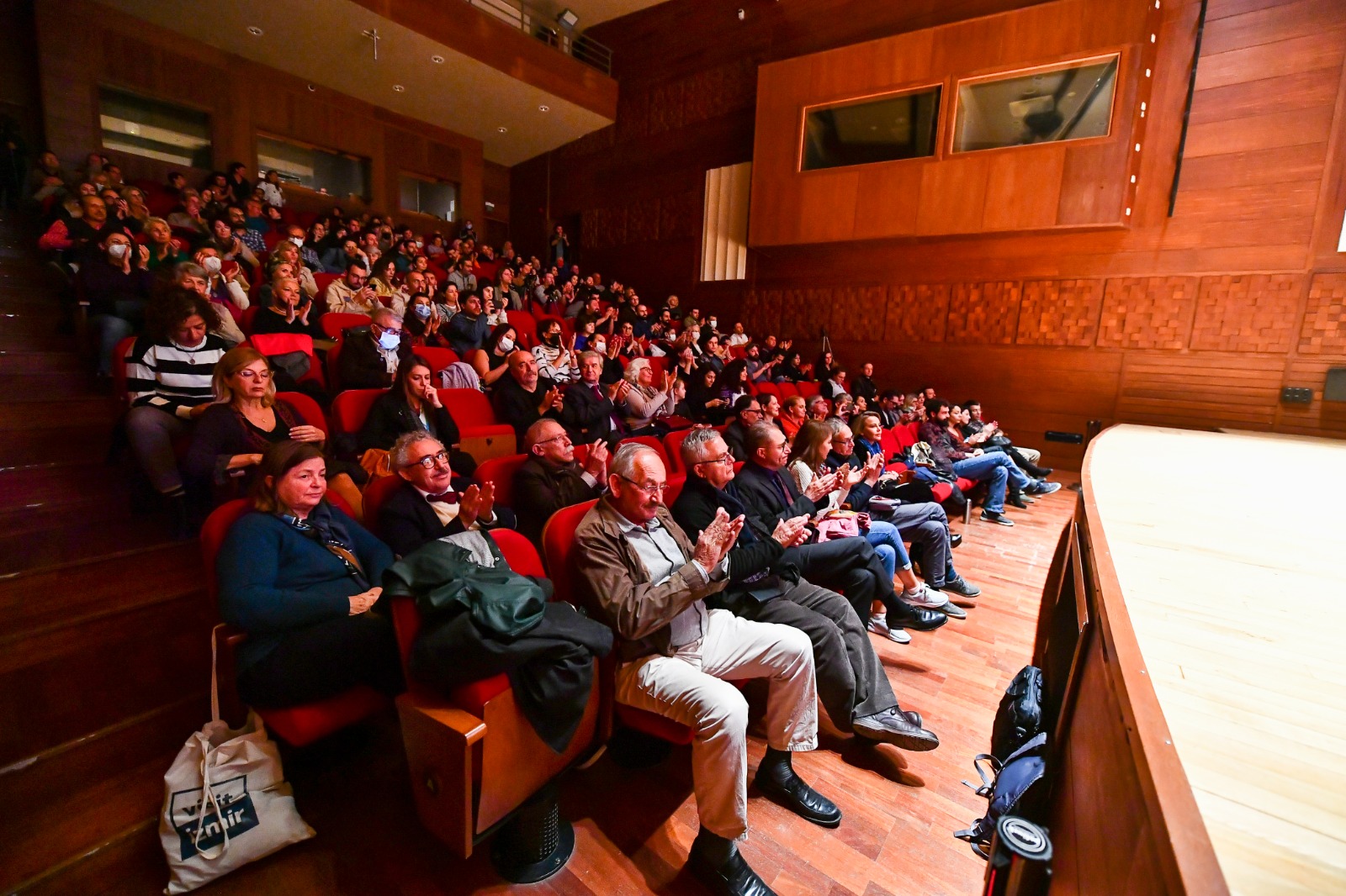 Férid Boughedir ise İzmir Büyükşehir Belediye Başkanı Tunç Soyer ve festival yönetmeni Vecdi Sayar’a teşekkür ederek “Henri Langlois’yı babam olarak kabul ediyorum. Paris’in bir banliyösünde yaşadığım gençlik yıllarımda, her hafta sonu trene atlayıp Paris’e, Fransız Sinemateki’ne giderdim. Langlois yaşamı boyunca sinemanın belleğini korumak için mücadele verdi. Beni sinema tarihine, özellikle Arap Sineması tarihine ilişkin kitap ve belgesellere yönelten Langlois olmuştur. ‘Arap Sineması’na ilişkin belgeselim ‘Cannes Klasikleri’ bölümünde sinemanın ustaları arasında yer aldığında, kendimi yaşlı hissetmiştim, çünkü bu bölümde filmleri gösterilen ustaların hepsi ölmüştü. İzmir’in bana verdiği bu önemli ödül kendimi yeniden genç hissetmemi sağladı” dedi. Ardından Salut de Smyrne gurubu, “İzmir’den Akdeniz’e Şarkılar” başlığı altında Akdeniz’in farklı dillerinde şarkılardan oluşan bir konser verdi.
