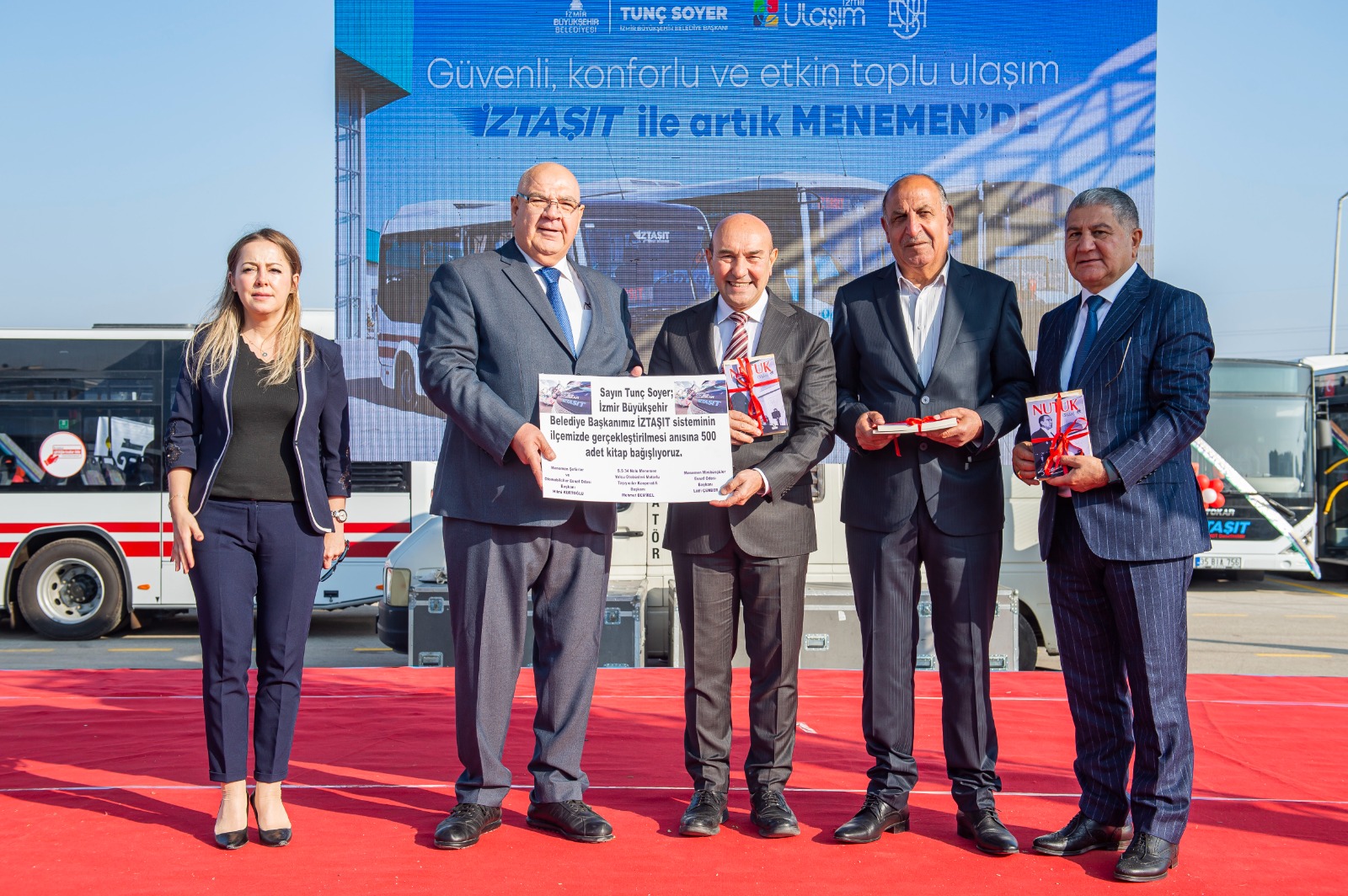 Çevre ilçelerin toplu ulaşım ağına entegre edilmesi amacıyla İzmir Büyükşehir Belediyesi’nin ilk kez Seferihisar’da hayata geçirdiği İZTAŞIT projesi, Kiraz’ın ardından Menemen'de de başladı. ESHOT denetimli İZTAŞIT araçları törenle hizmete alındı. Başkan Tunç Soyer, “İzmir'e, Menemen'e çağ atlatan bir proje. Toplu ulaşımda tüm Türkiye'ye örnek olmasını dilediğimiz bir proje. Çünkü kazananı çok” dedi.