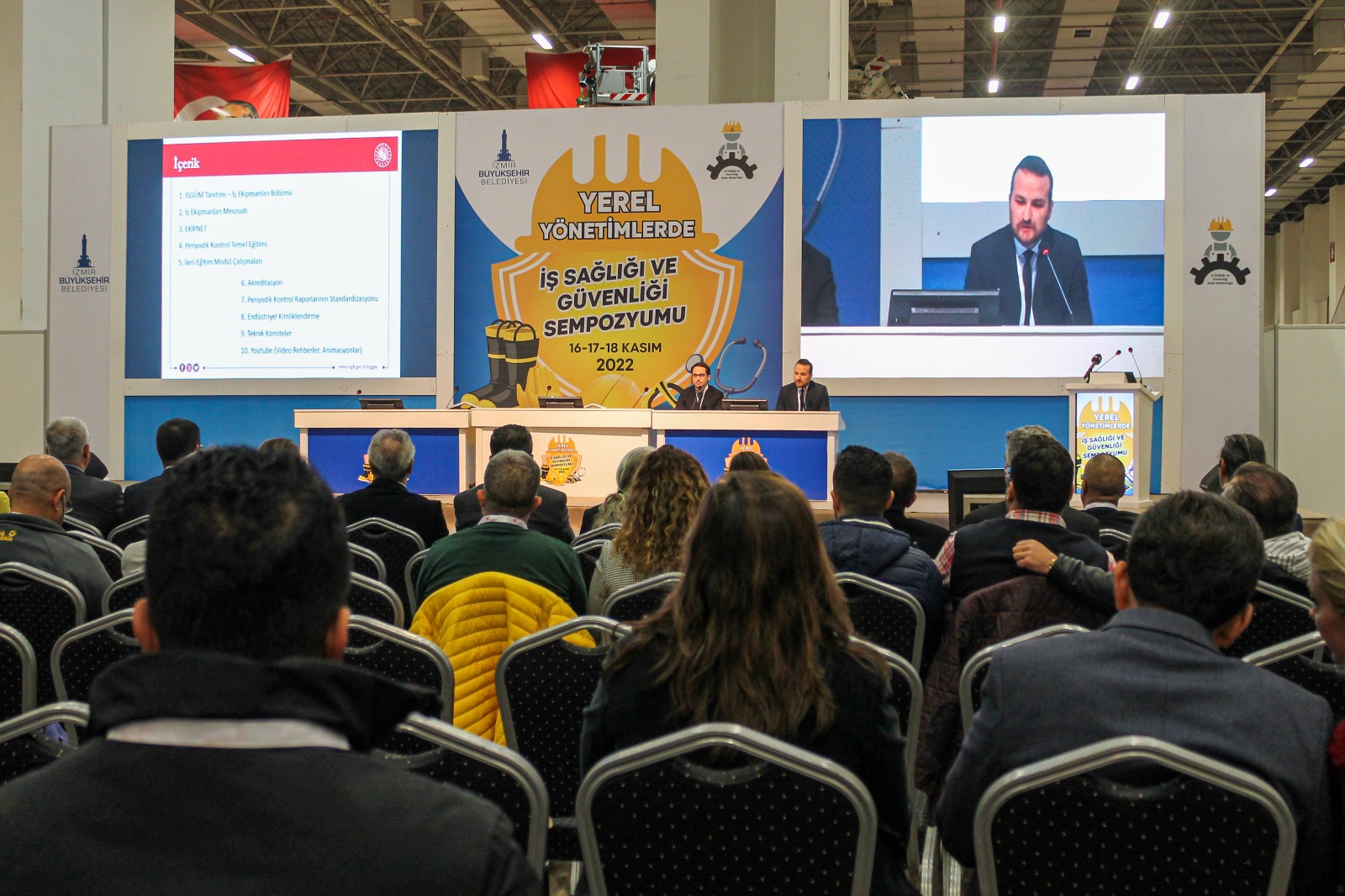 İzmir Büyükşehir Belediyesi ev sahipliğinde Yerel Yönetimlerde İş Sağlığı ve Güvenliği Sempozyumu başladı. Fuar İzmir’deki sempozyumda kamu ve yerel yönetimlerde iş sağlığı ve güvenliği uygulamaları, mevzuat ve standartlar, pratikte yaşanan sorunlar, çözüm önerileri, iyi uygulama örnekleri sunularak, deneyim ve bilgi paylaşımı amaçlanıyor. Sempozyum 18 Kasım’da sona erecek.