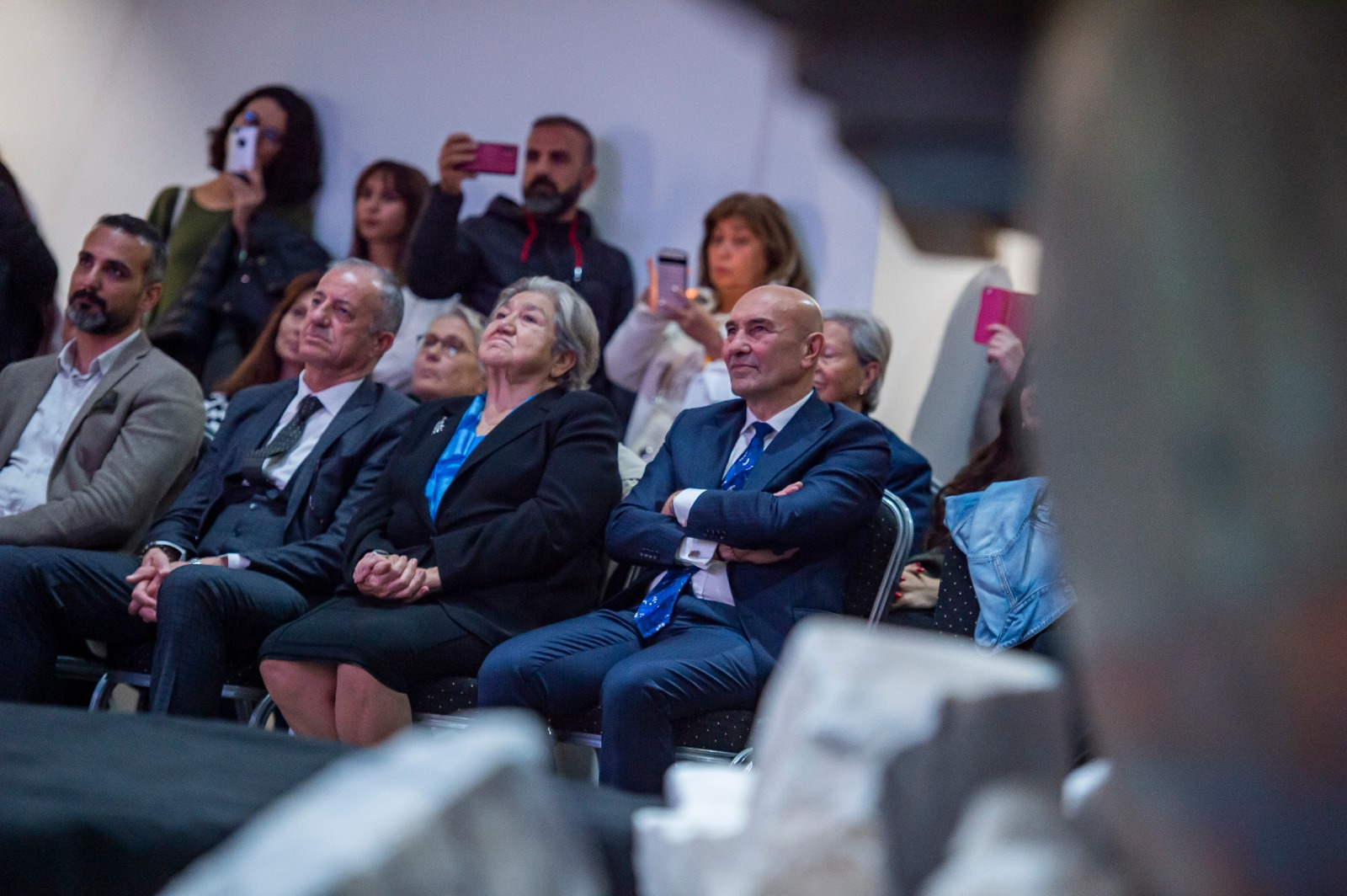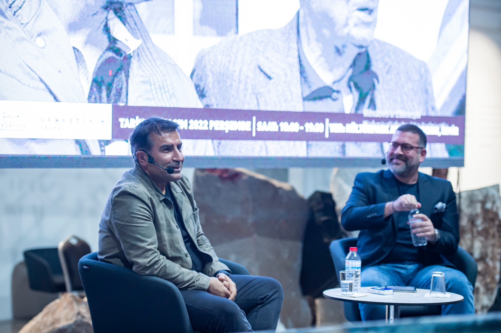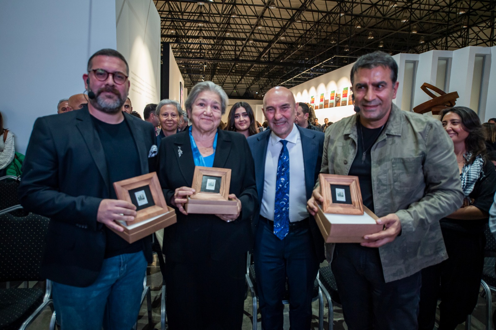 Söyleşinin ardından Başkan Tunç Soyer, katılımcılara İzmir’in kurtuluşunun yüzüncü yılı anısına bastırılan çerçeveletilmiş pullardan hediye etti.