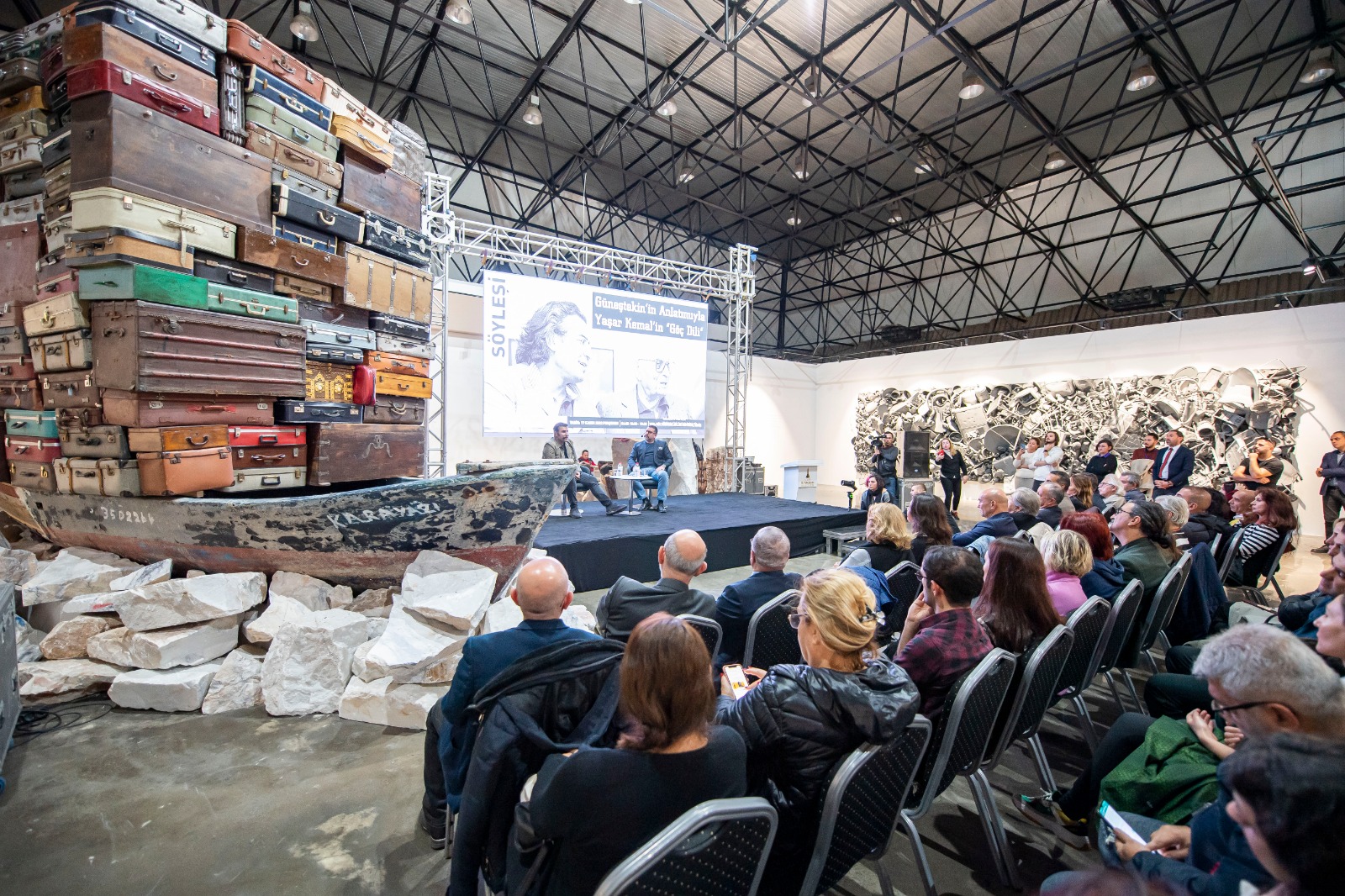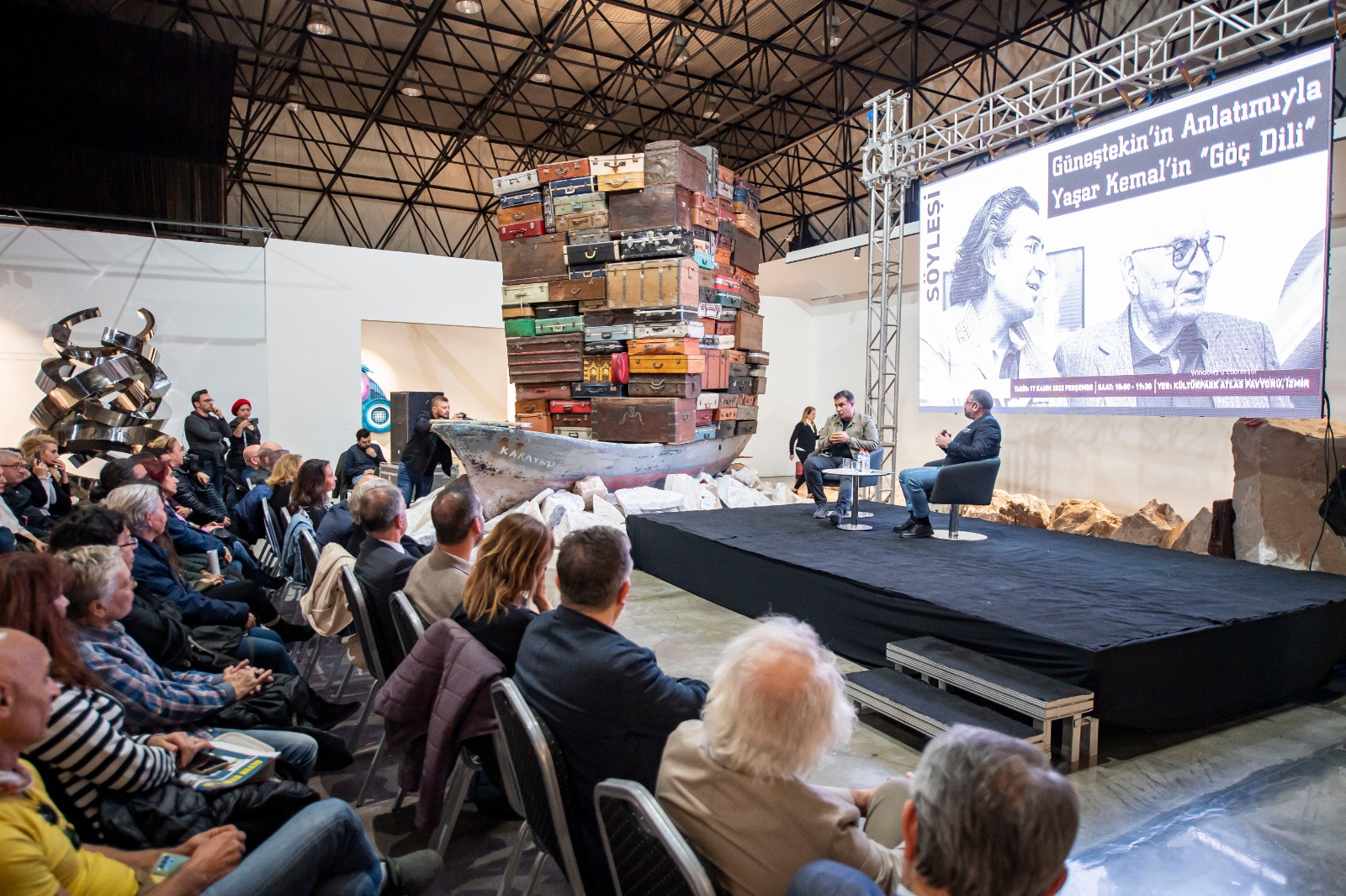 İzmirli edebiyat severler ressam Ahmet Güneştekin’den kendisinin göç olgusuna ve mübadeleye bakışını şekillendiren usta yazar Yaşar Kemal’i dinledi. Kültürpark Atlas Pavyonu’ndaki “Gâvur Mahallesi” sergisi ile iç içe yapılan söyleşide konuşan Güneştekin, “Mübadeleyi yazan insan, oradaki kediyi, börtü böceği, atı, ineği, ağacı yazan insan iyi insandır. Yaşar Kemal tanıdığım en vicdanlı insandı” dedi.