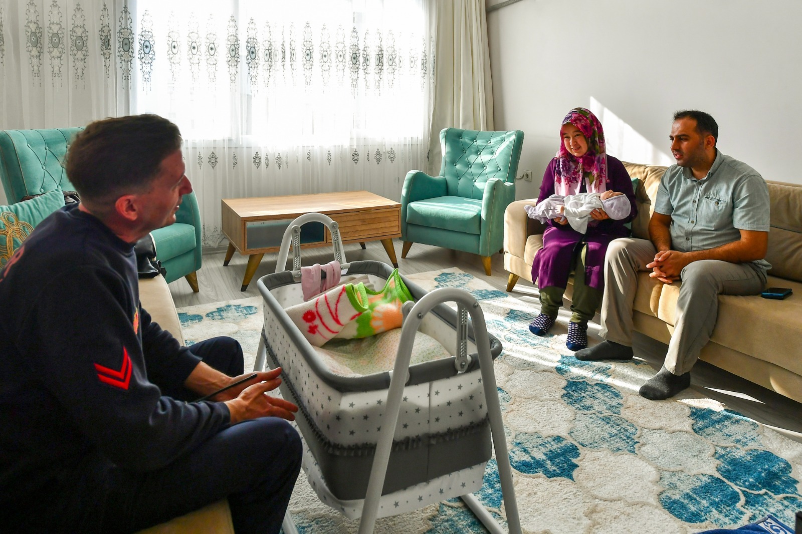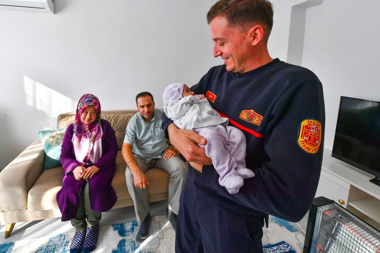 İzmir Büyükşehir Belediyesi’nin itfaiye personeli Yiğit Özer geçen hafta alevlerin arasından kurtardığı Zümra Nehir bebekle bir kez daha buluştu. Nehir bebeğin evine konuk olarak geçmiş olsun dileklerini ileten Yiğit Özer, bu kez Nehir bebeği sevmek için kucağına aldı. Anne Havva Araz ise hem bebeğini hem de kendisini kurtardığı için Özer’e teşekkür etti.
