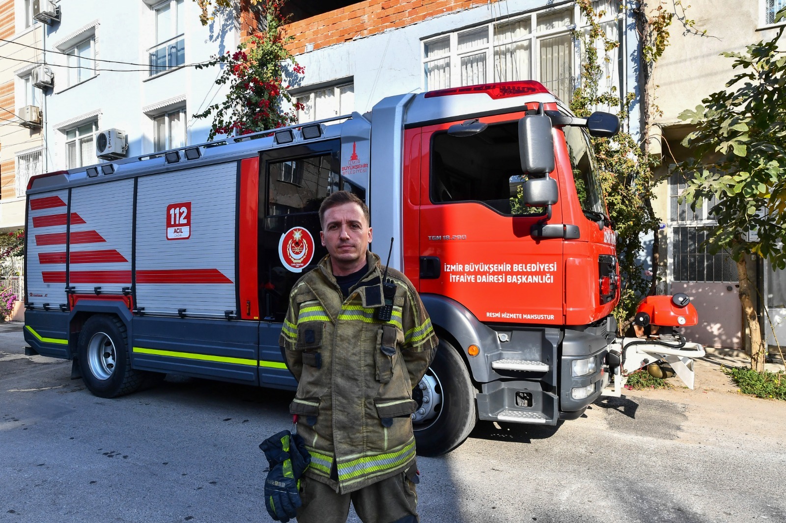 Her gün onlarca yangın ve kaza ihbarına koşan ve hayat kurtarmak için mücadele eden İzmir Büyükşehir Belediyesi İtfaiyesi geçen hafta yürekleri ısıtan bir kurtarma operasyonuna imza attı. Buca’nın Çamlıkule Mahallesi’nde bir apartmanda çıkan yangın alt katları sarınca dördüncü katta yaşayan Havva Araz ve 1,5 aylık bebeği Zümra Nehir dumanlar arasında mahsur kaldı. Umutların tükenmek üzere olduğu bir anda genç anne ve bebeğinin imdadına İzmir İtfaiyesi’nin alev savaşçıları yetişti. Minik Zümra Nehir itfaiye personeli Yiğit Özer’in kolları arasında yanan binadan çıkarıldı. Yaşananlar ne kadar korkutucu olsa da mutlu biten hikayenin iki kahramanı Yiğit Özer ve Zümra Nehir bebek bir hafta sonra yeniden bir araya geldi. Araz ailesine geçmiş olsun dileklerini ileten Özer, bu kez Nehir bebeği sevmek için kucağına aldı.