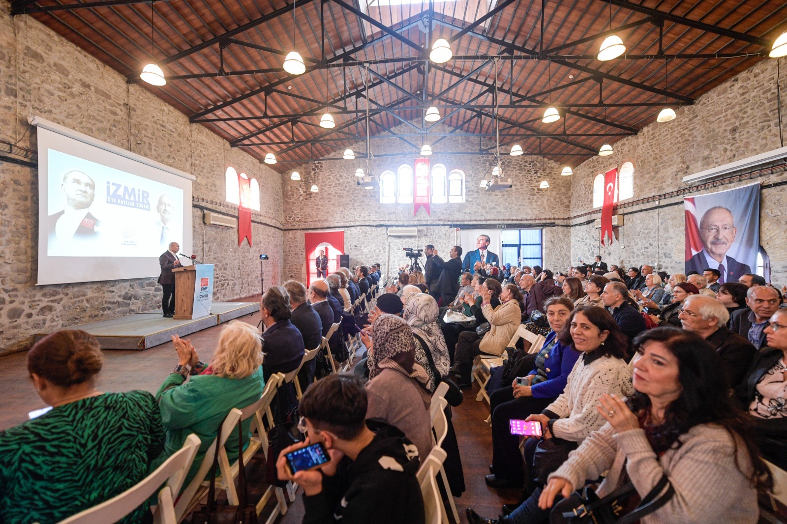 Başkan Tunç Soyer, “Dünyanın en güzel noktasında olağanüstü bir iklim kuşağında yokluk içinde, sefalet içinde, işsizlik içinde kıvranıp duruyoruz. Bu bir kader değil. Bu yanlış politikaların bizi getirdiği noktadır. Bunun başka türlüsü mümkün. Bu güzelim topraklarda olağanüstü zengin bereketli topraklarda el ele güler yüzle sağlık içinde çocuklarımızın geleceğinden kaygı duymadan, barış içinde huzurla yaşayabiliriz. Demokrasiye ihtiyacımız var. Bu topraklarda üretilen refahın adil paylaşımına ihtiyaç var. Biz başka bir hayatın mümkün olduğunu bildiğimiz için onu kurmak üzere siyaset yapıyoruz. Bizim siyaset yapma sebebimiz sadece bu. Başka türlü bir hayat mümkün. Bir gün bu anlaşılsın istiyoruz. Bu salonda bulunan, çoğunluğu kadın olan yurttaşlarımız bunu anlamış ve bu anlamda bize eşlik etmeye karar vermiş. Hepinizin önünde saygı ve sevgiyle eğiliyorum” dedi.
