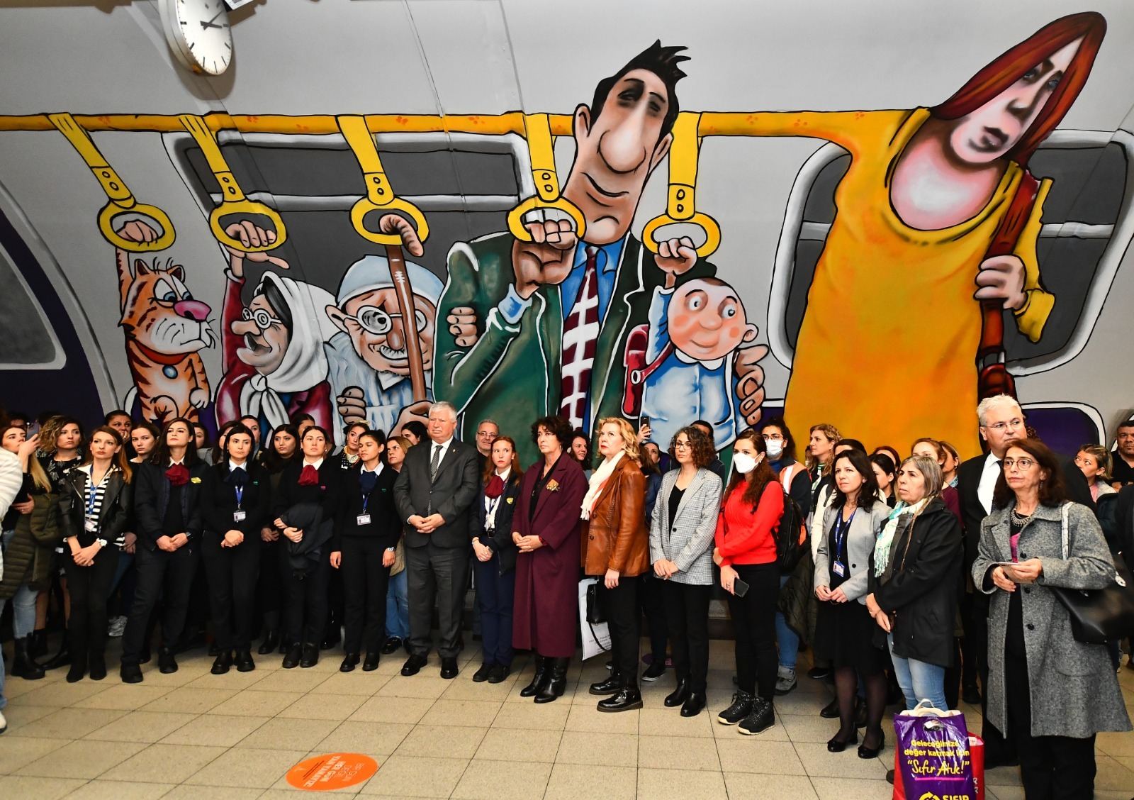 İzmir Büyükşehir Belediyesi, 25 Kasım Kadına Yönelik Şiddetle Uluslararası Mücadele Günü'nde kadına yönelik şiddete dikkat çekmek için farkındalık etkinliği düzenledi. İzmir Büyükşehir Belediyesi Toplumsal Cinsiyet Eşitliği Uluslararası Karikatür Yarışması'nda dereceye giren karikatürist Halit Kurtulmuş Aytoslu'nun “Kadına Yönelik Şiddetle Mücadele” temalı karikatüründen uyarlanan mural çalışmasının yer aldığı farkındalık alanı Üçyol Metro İstasyonu'nda açıldı. Açılışa İzmir Büyükşehir Belediyesi Başkanvekili Mustafa Özuslu, İzmir Köy-Koop Birlik Başkanı Neptün Soyer, İzmir Kent Konseyi ve İzmir Büyükşehir Belediyesi Toplumsal Cinsiyet Eşitliği Komisyonu Başkanı Nilay Kökkılınç, İzmir Büyükşehir Belediyesi Metro Genel Müdürü Sönmez Alev, İzmir Büyükşehir Belediyesi Sosyal Projeler Dairesi Başkanı Anıl Kaçar ile çok sayıda yurttaş katıldı.