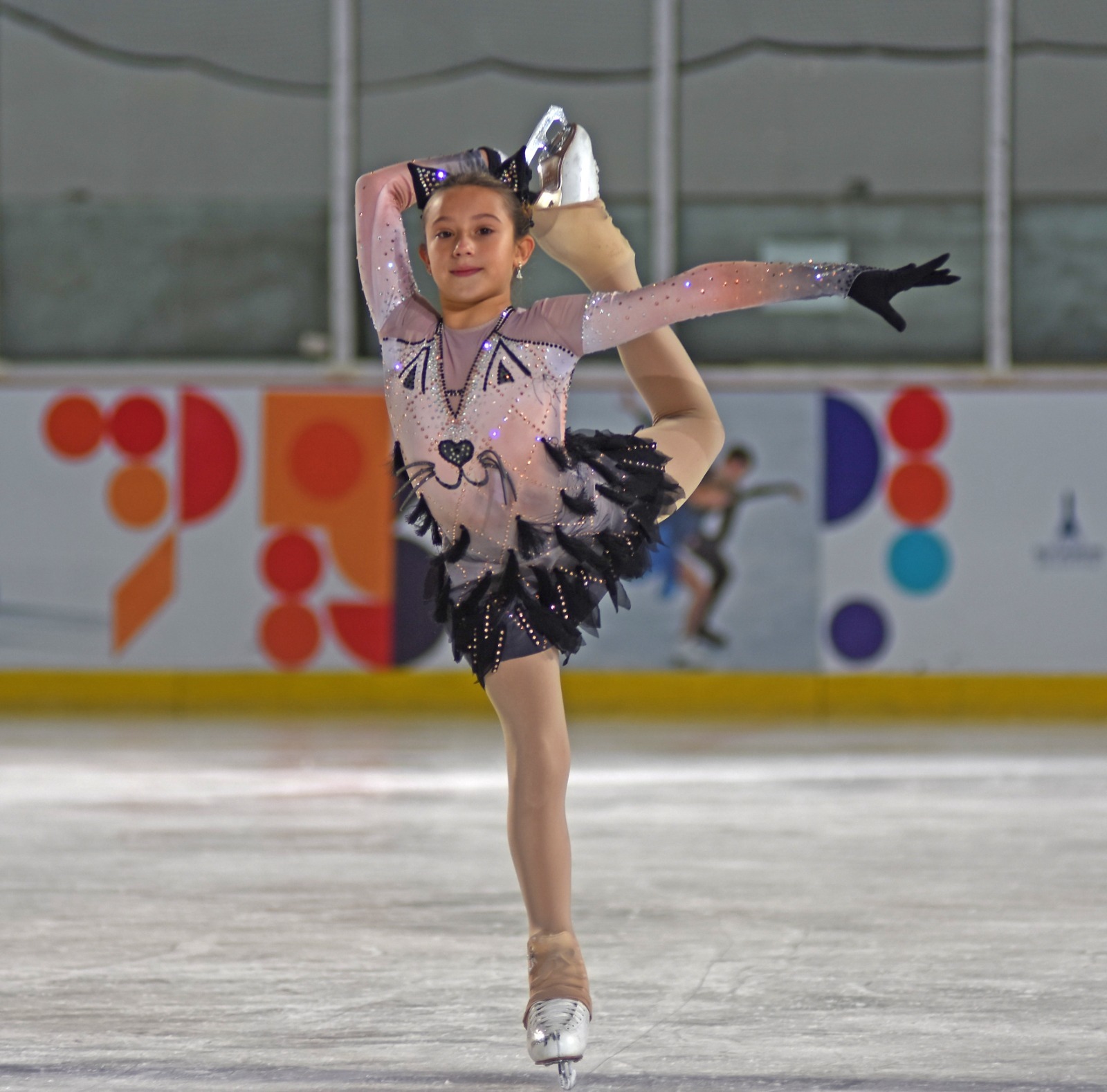 Minik buz pateni sporcusu Doğa annesinin yolunda