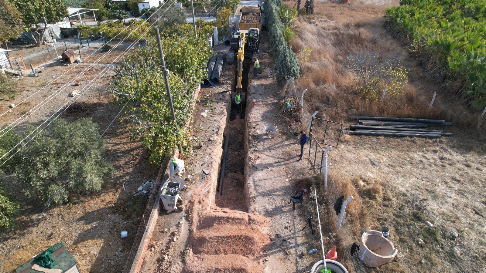 Şirinkent Mahallesi’nde devam eden atıksu hattı çalışmaları ve yapılacak terfi merkezi ile atık suların arıtma merkezine iletimi sağlanacak.